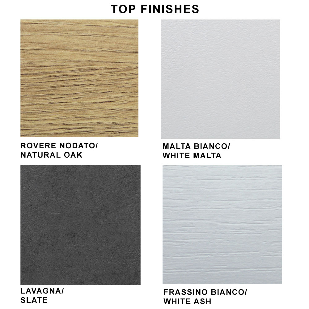 El tablero y la base se pueden personalizar con diferentes acabados de muestra o lacados RAL.