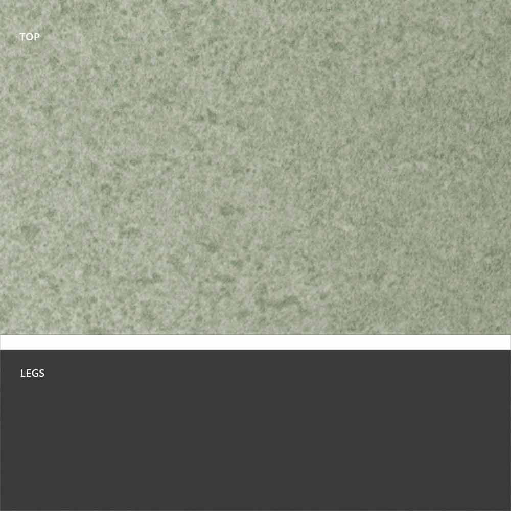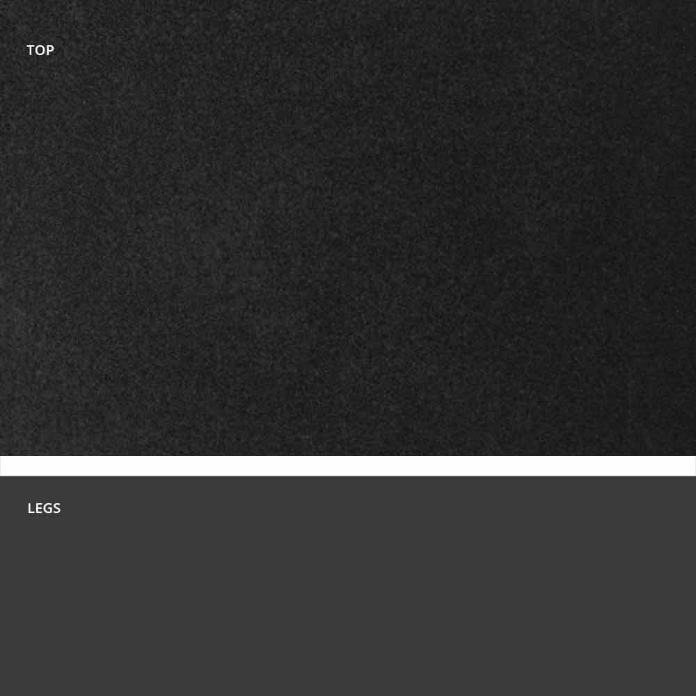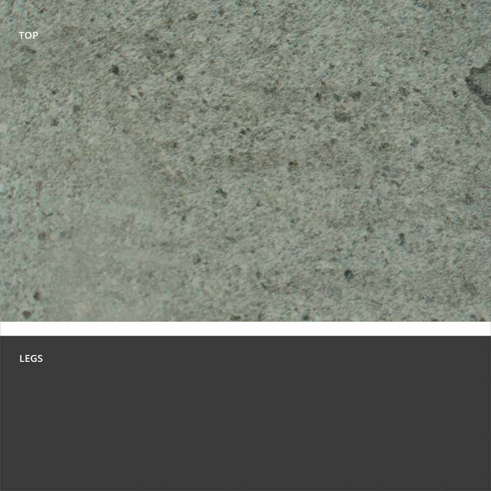 Hecho a mano en Italia en tres acabados diferentes: - base en metal gris negro (RAL 7021) y tapa de gres en acabado de resina de ébano; - base en metal gris negro (RAL 7021) y tapa de gres en acabado de basalto de arena; - Base en metal gris negro (RAL 7021) y gres en acabado humo.