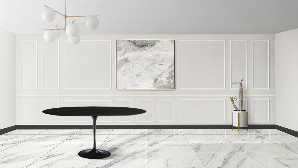 Mesa de comedor extensible hasta 187 cm con tapa de laminado líquido negro y base de aluminio pulido negro totalmente Made in Italy . Este mueble responde a las necesidades de funcionalidad y adaptabilidad de cualquier ambiente de salón y cocina. Refinado y de líneas sencillas, puede insertarse en todos los muebles para completar mejor cada estancia. La posibilidad de ser ampliada la convierte en un elemento único que responde a la necesidad de tener más comensales, gracias también a la forma de la base que favorece la inserción de muchas sillas. Esta mesa es la idea perfecta para tener algo original y elegante pero a la vez útil para todas las ocasiones y eventos.