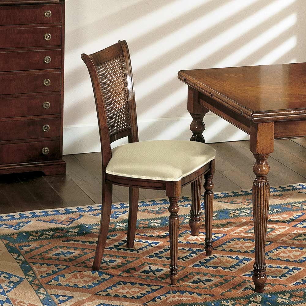 - Silla: estructura de nogal patinado - asiento de tela juma
