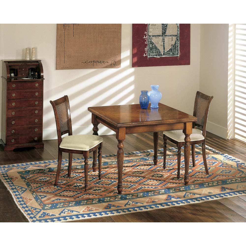 Mesa de salón con apertura abatible y 2 sillas de madera Made in Italy