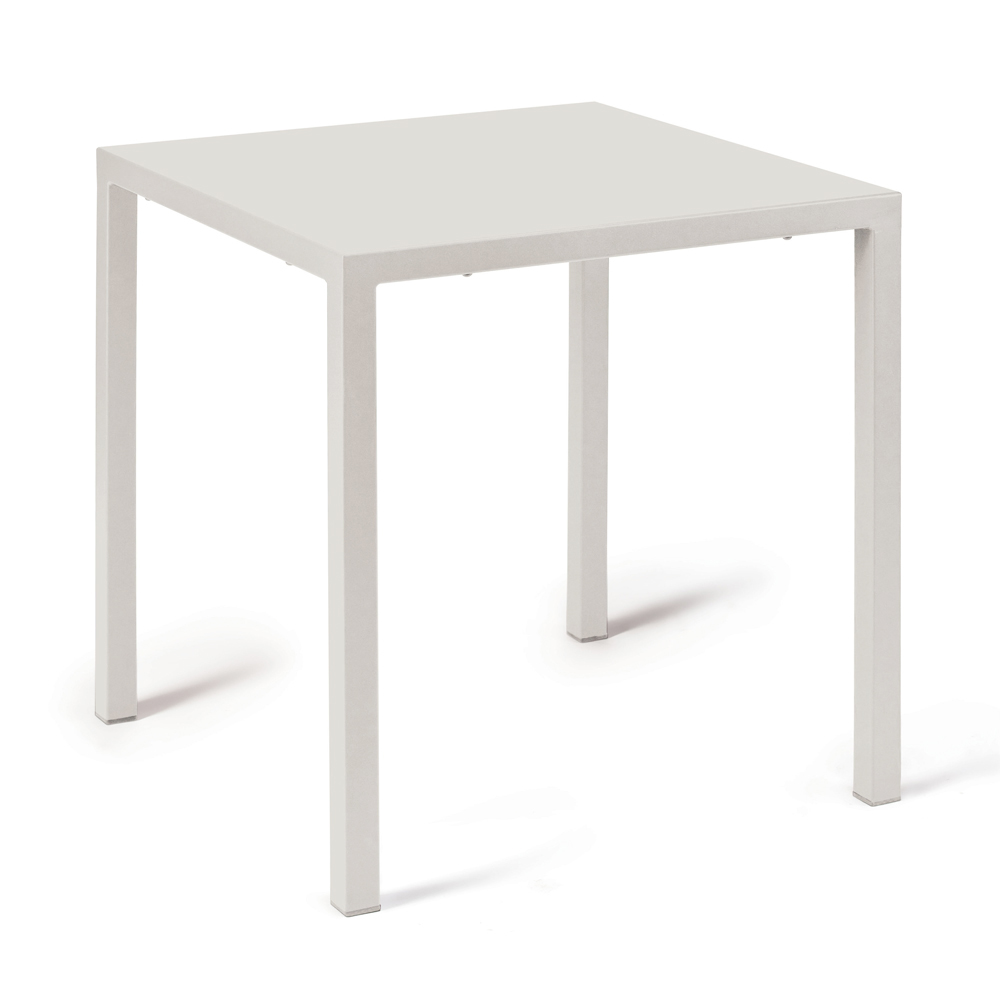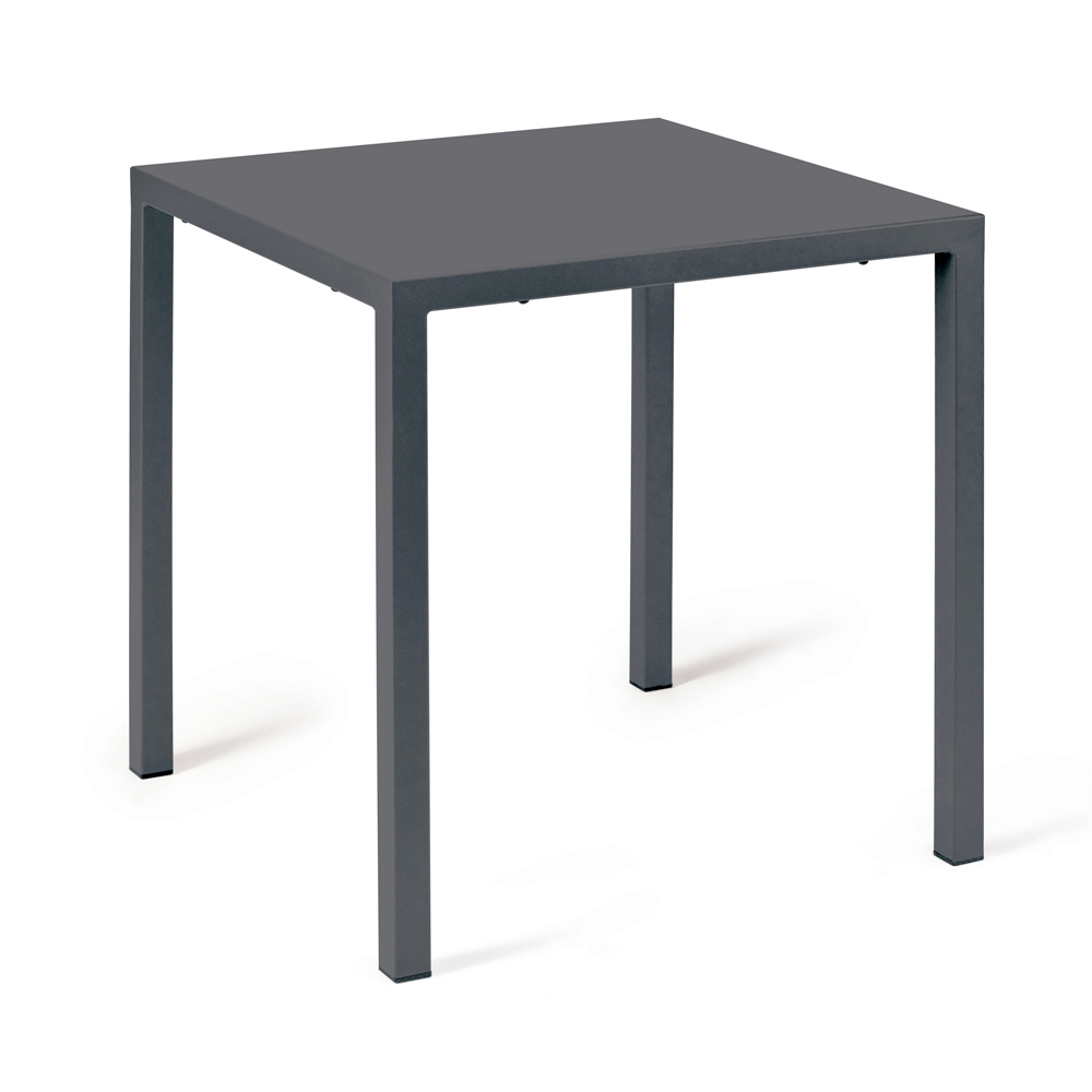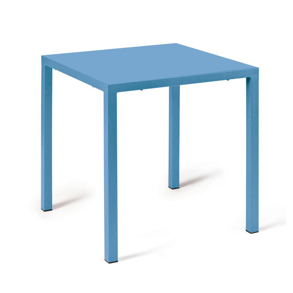 Mesa de comedor para exterior apilable y autonivelante Fabricada en Italia íntegramente en acero galvanizado con patas cuadradas y 4 pies regulares.