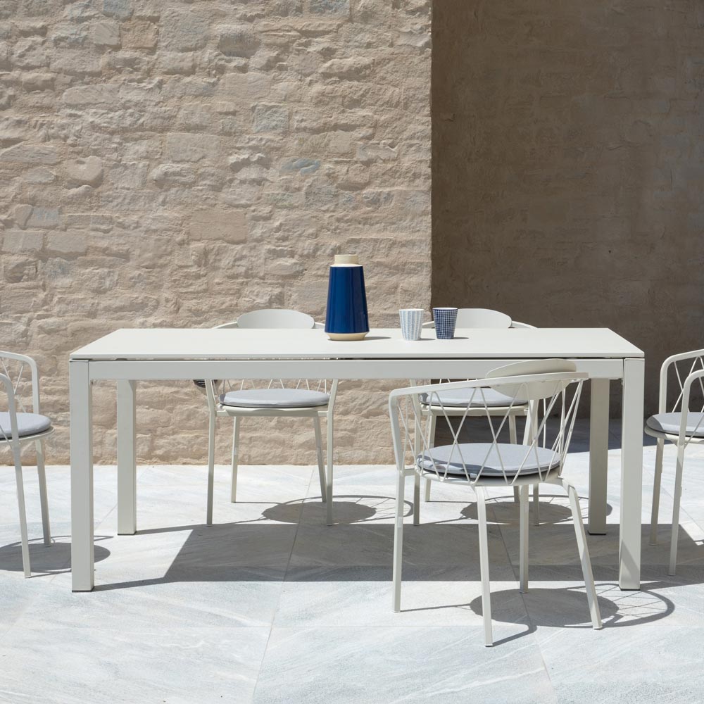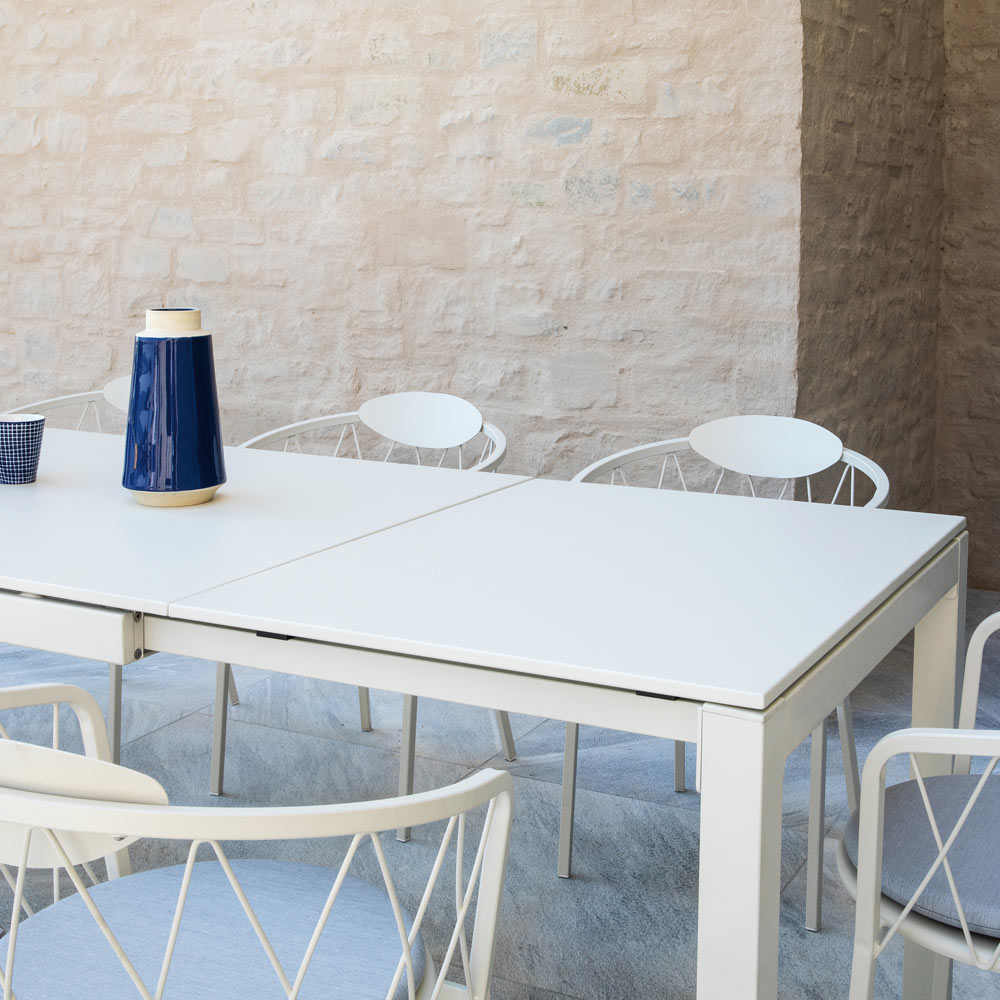 Mesa de comedor extensible para exterior en hierro galvanizado con recubrimiento de polvo. Fabricada en Italia.