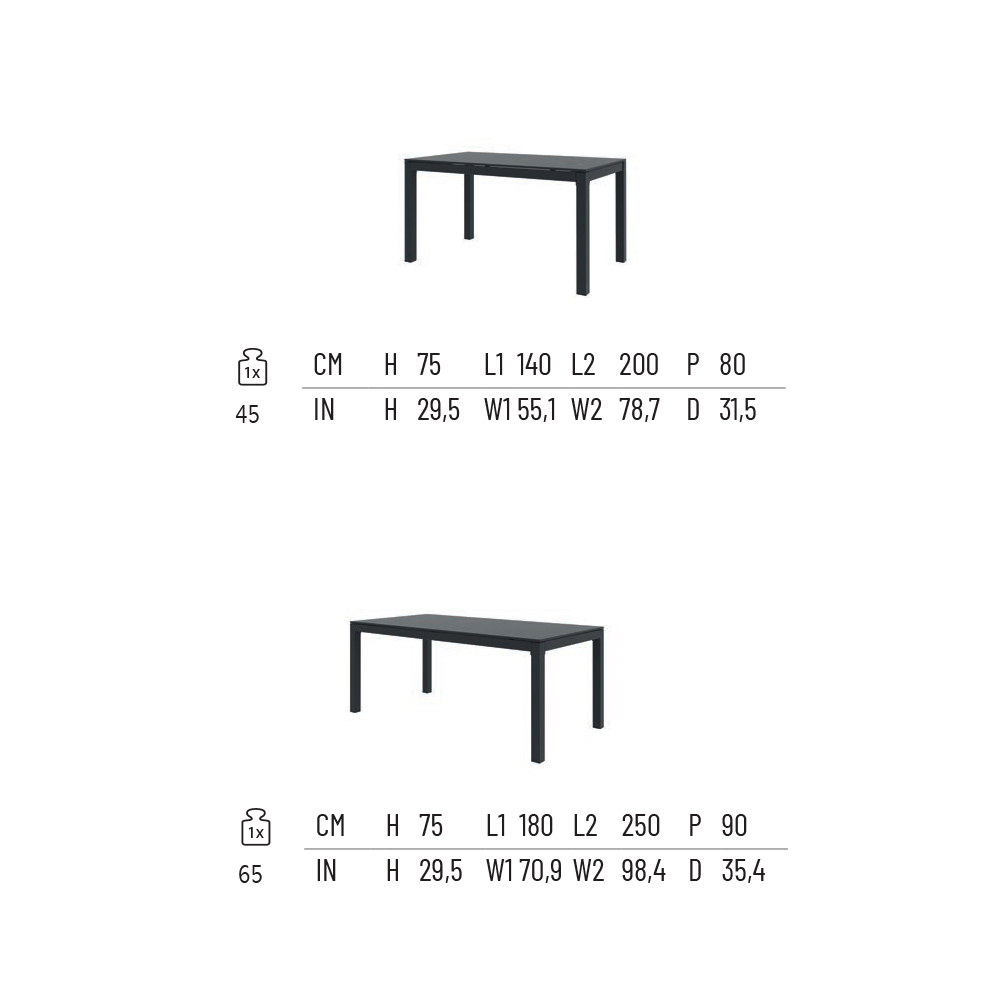 Mesa de comedor de exterior con tablero autonivelante extensible hasta 250 cm , fabricada íntegramente en Italia en hierro galvanizado con recubrimiento en polvo de color . Una solución de decoración que combina practicidad y estilo contemporáneo en un producto de estética moderna , perfecto para cualquier ambiente. Gracias a la simplicidad de sus formas y a la versatilidad del modelo, disponible en dos tamaños diferentes, la mesa satisface las necesidades más diversas, integrándose con elegancia y estilo en entornos domésticos o de contract.