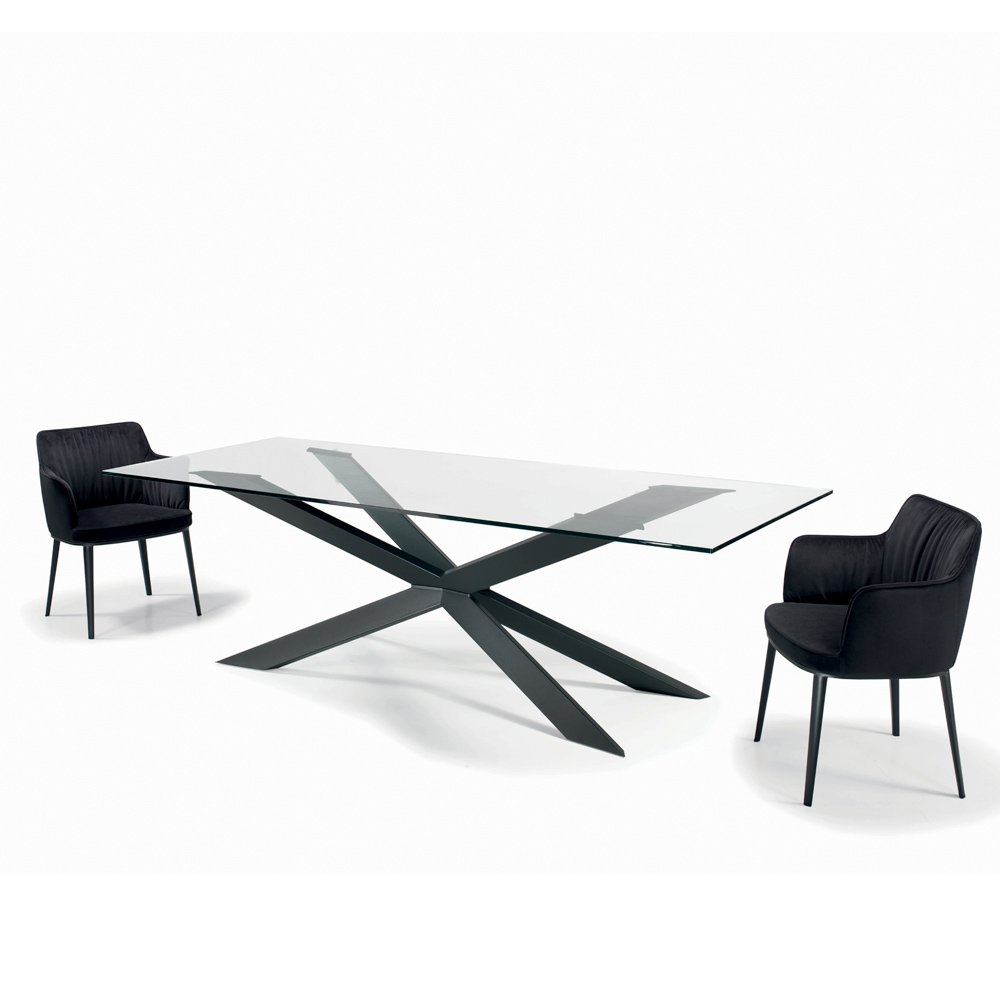 Mesa de salón fija con tapa de cristal transparente extraclaro, borde inverso de 30° , base de acero lacado con pies regulables. Toda la maestría y calidad de los artesanos italianos están contenidas en este producto, donde se han elegido los mejores materiales y se ha prestado la máxima atención a cada detalle . Queríamos combinar el estilo moderno con la funcionalidad para crear una mesa que no sólo sea hermosa a la vista sino que también se pueda utilizar en diferentes ocasiones.