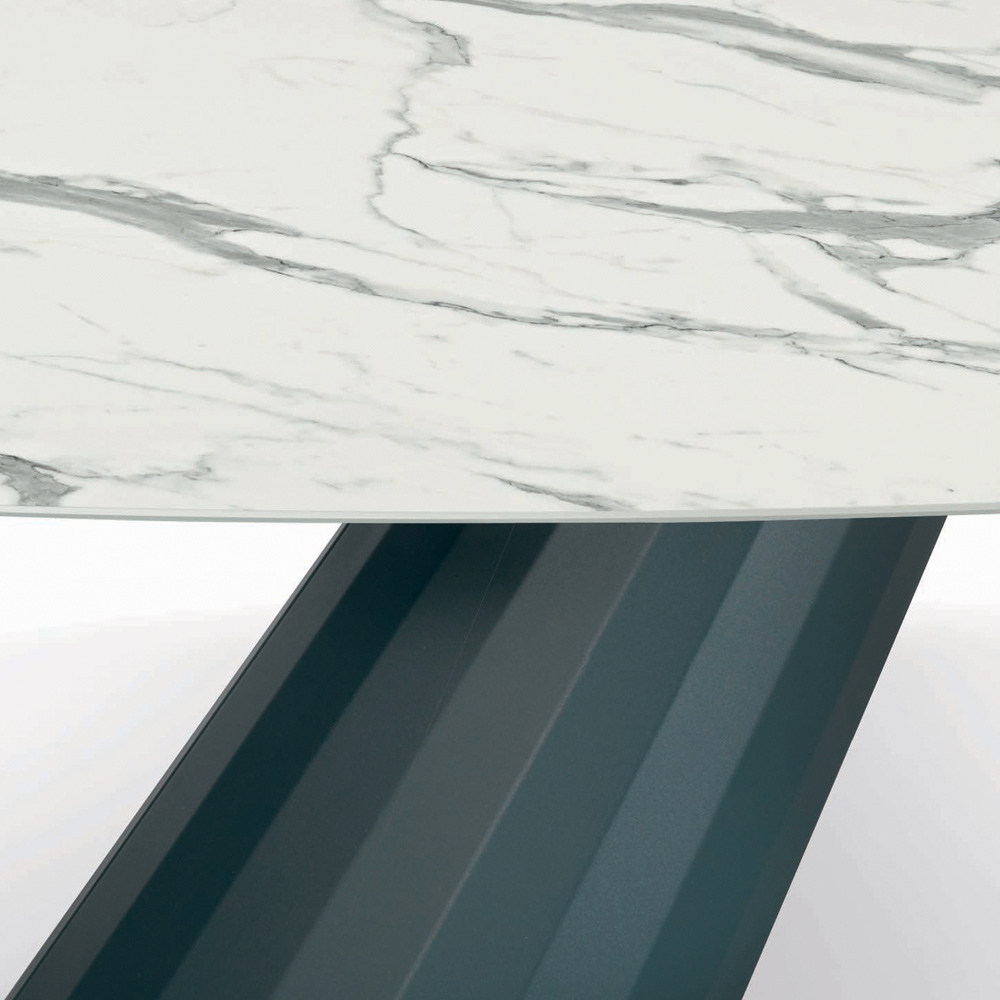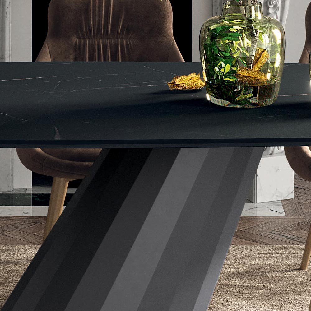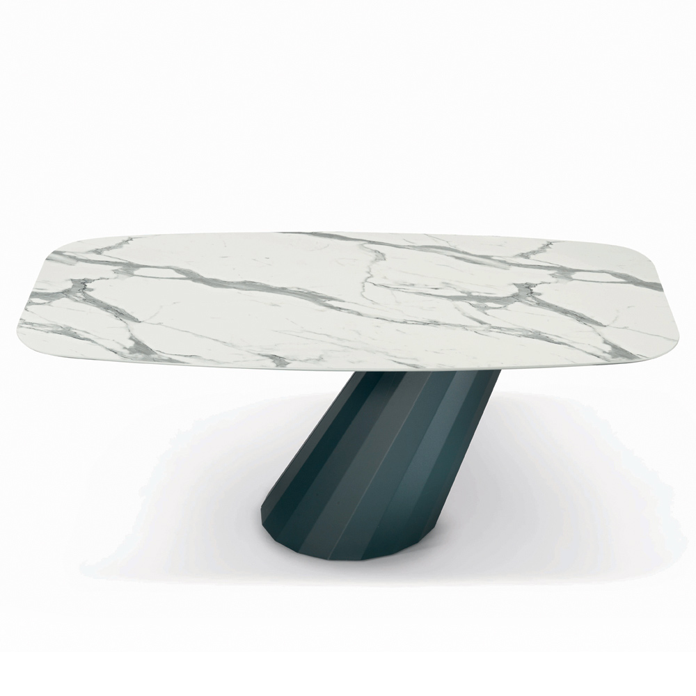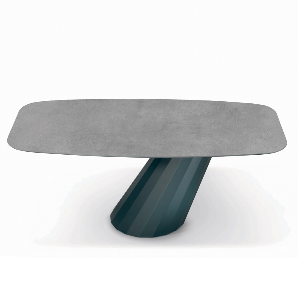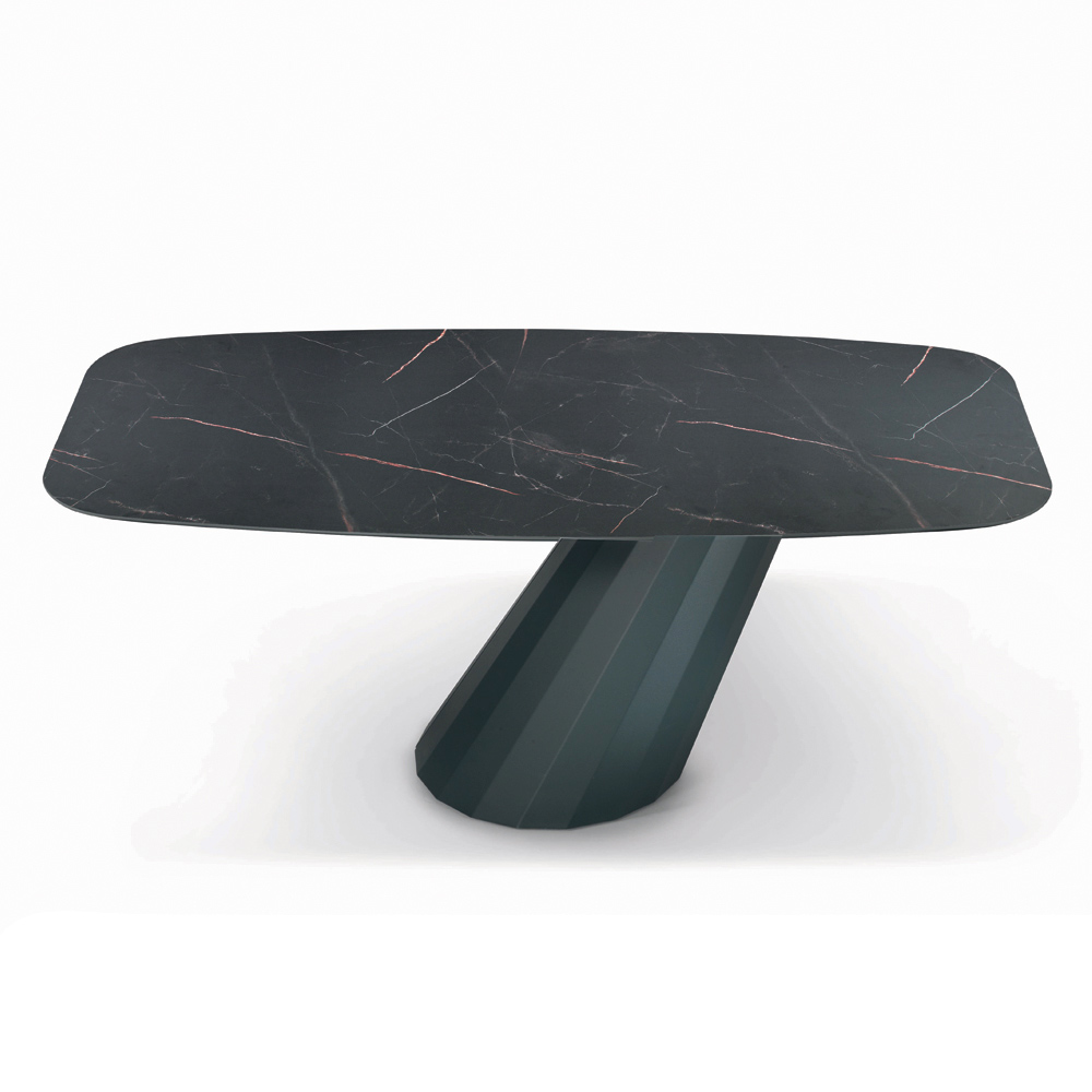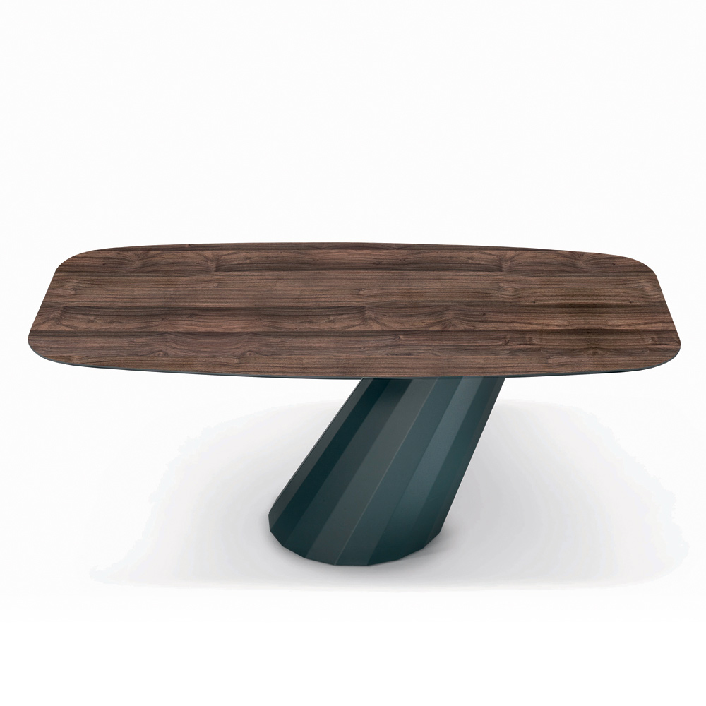 Mesa de salón fija en forma de barril con tapa en laminado , borde biselado a 30° , base de acero lacado en negro y pies regulables Made in Italy. Este producto desprende gran elegancia y se convierte en protagonista de cualquier ambiente . El refinamiento de la forma de la base combinado con el acabado del tablero elegido crea una mesa única, de gran impacto visual, que decora con gusto y refinamiento los ambientes cotidianos y contract. La elección de materiales de primera calidad y la atención en la creación de cada detalle crean un producto de excelente calidad Made in Italy.
