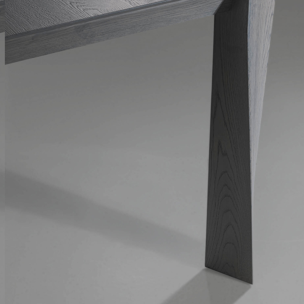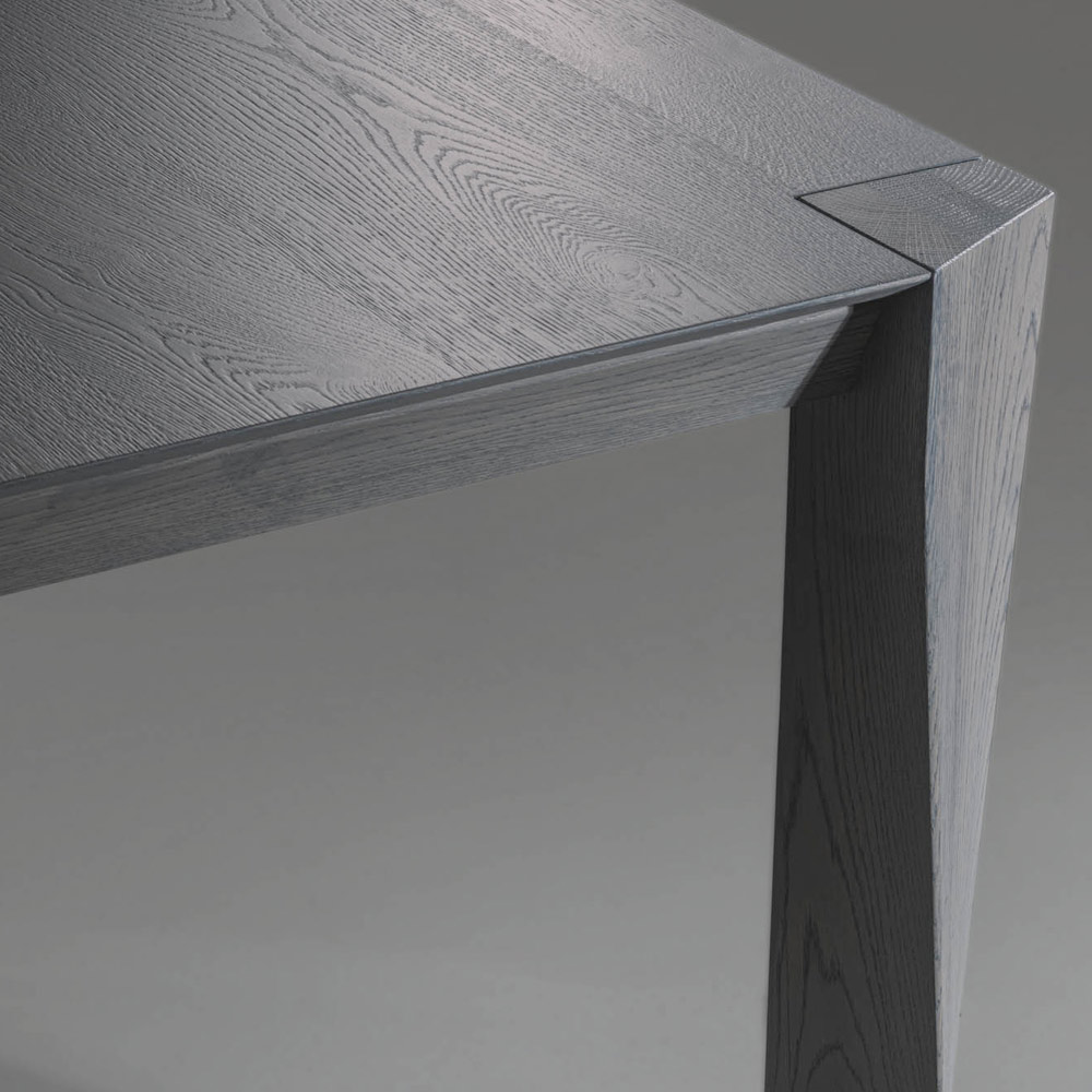 Mesa fija con tapa biselada y patas laminadas helicoidales Made in Italy.