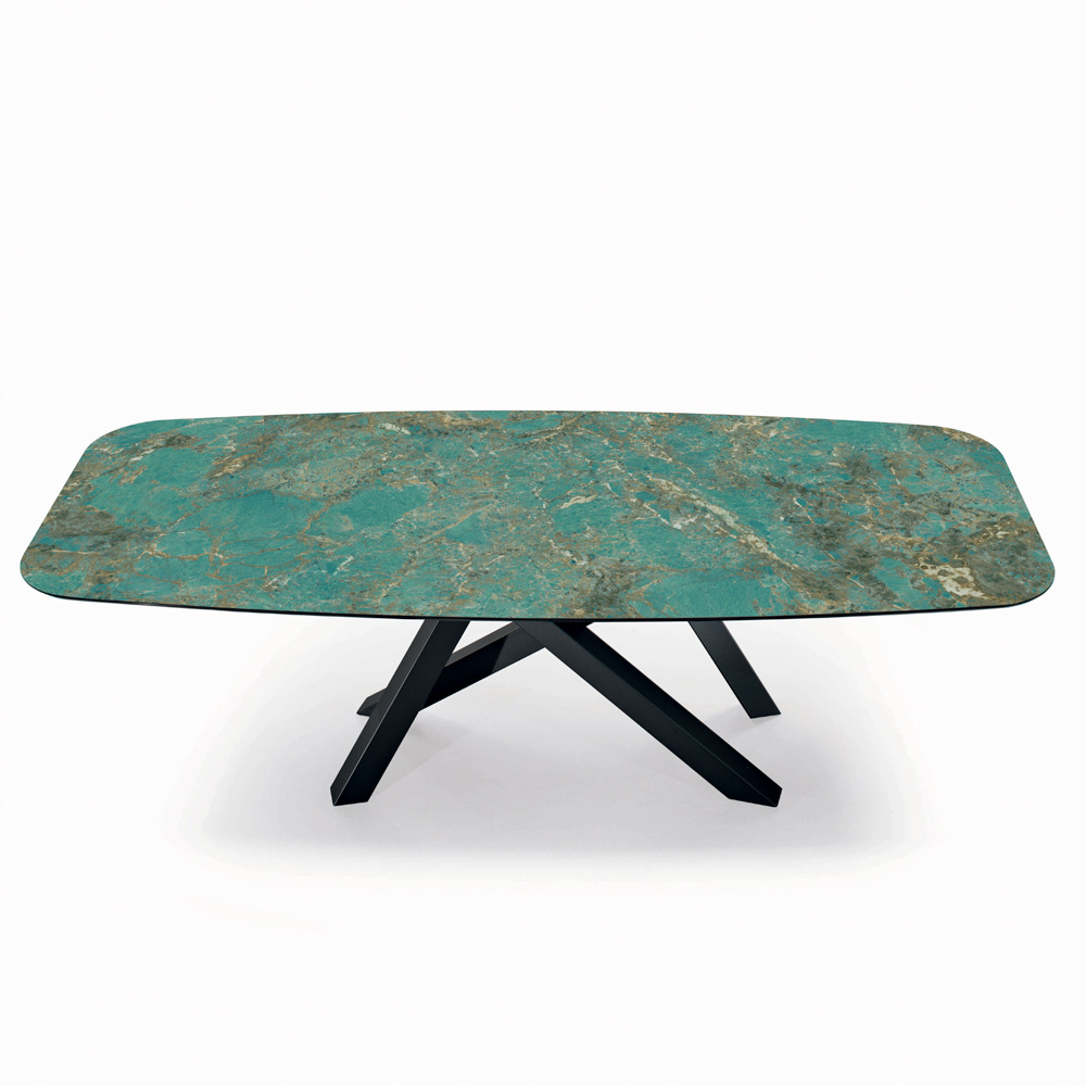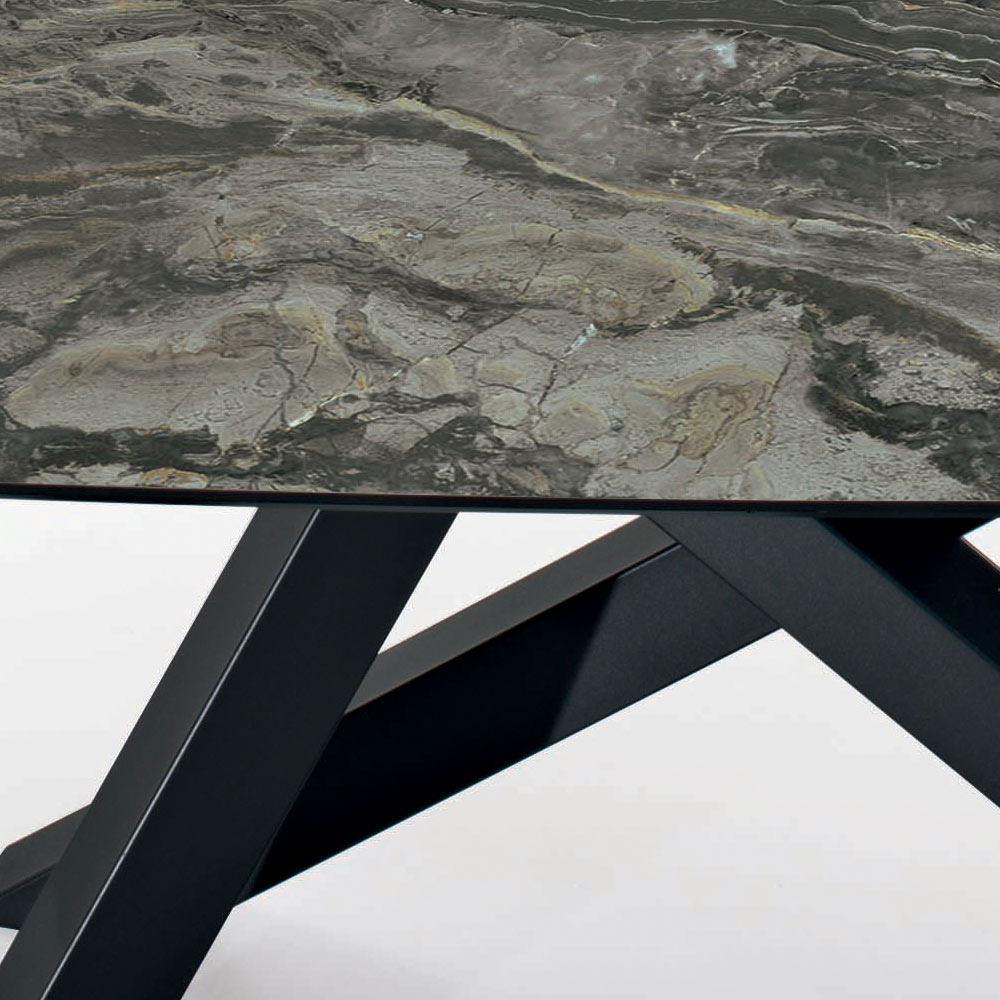 Mesa de salón fija en forma de barril con tapa de cerámica, borde biselado a 45° , base de acero con pies regulables. Estilo moderno y elegancia se encuentran en este producto que completa y hace único cada ambiente doméstico y contract. Gracias a los acabados y materiales elegidos, toda la calidad del Made in Italy está garantizada y un producto no sólo bello sino también funcional y práctico.