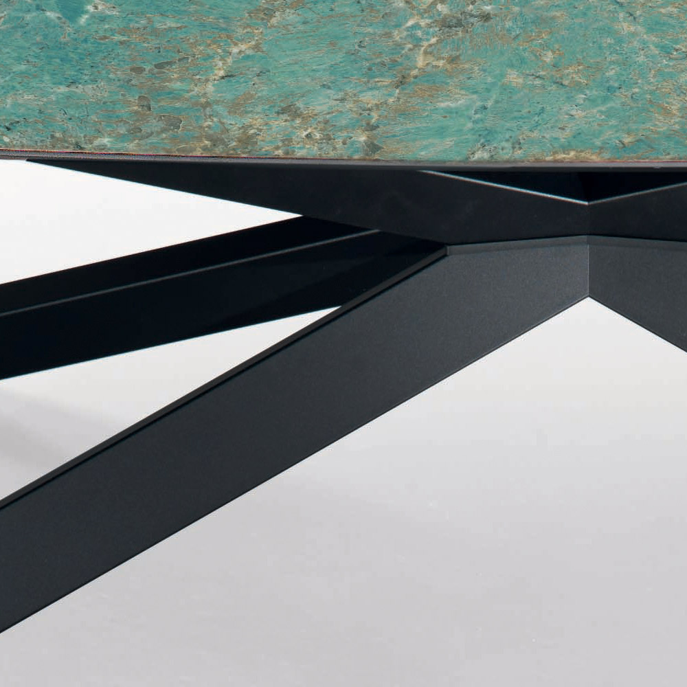 Mesa de salón fija en forma de barril con tapa de cerámica acabado amazonita pulida, borde biselado a 45° , base de acero lacado negro con pies regulables. Toda la maestría y calidad de los artesanos italianos están contenidas en este producto, donde se han elegido los mejores materiales y se ha prestado la máxima atención a cada detalle . Queríamos combinar el estilo moderno con la funcionalidad para crear una mesa que no sólo sea hermosa a la vista sino que también se pueda utilizar en diferentes ocasiones.