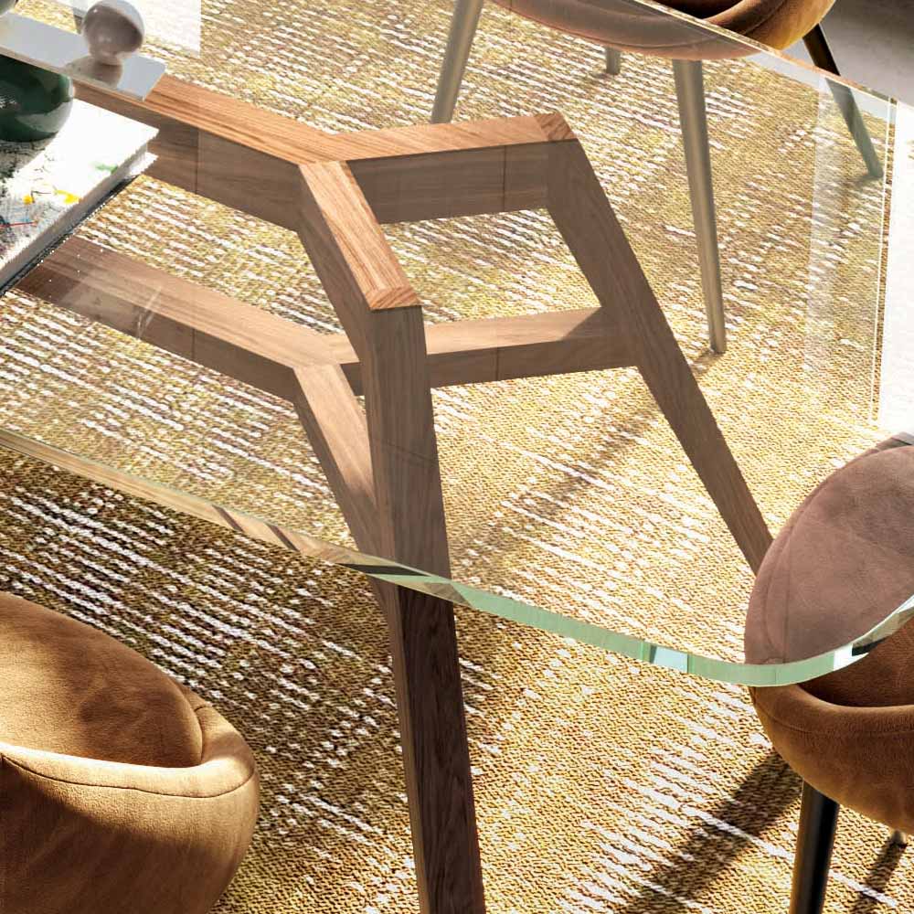 Mesa de salón fija en forma de barril con tapa de cristal , borde biselado a 30° , base de madera de fresno acabado nogal canaletto . Este producto de estilo moderno tiene como objetivo primordial poder ser utilizado a diario sin renunciar al diseño. La cadena de producción, desde la concepción hasta la producción, pasando por el control de calidad, se realiza íntegramente en Italia , para garantizar y preservar las características típicas del "saber hacer" italiano y la importancia del típico Made in Italy.