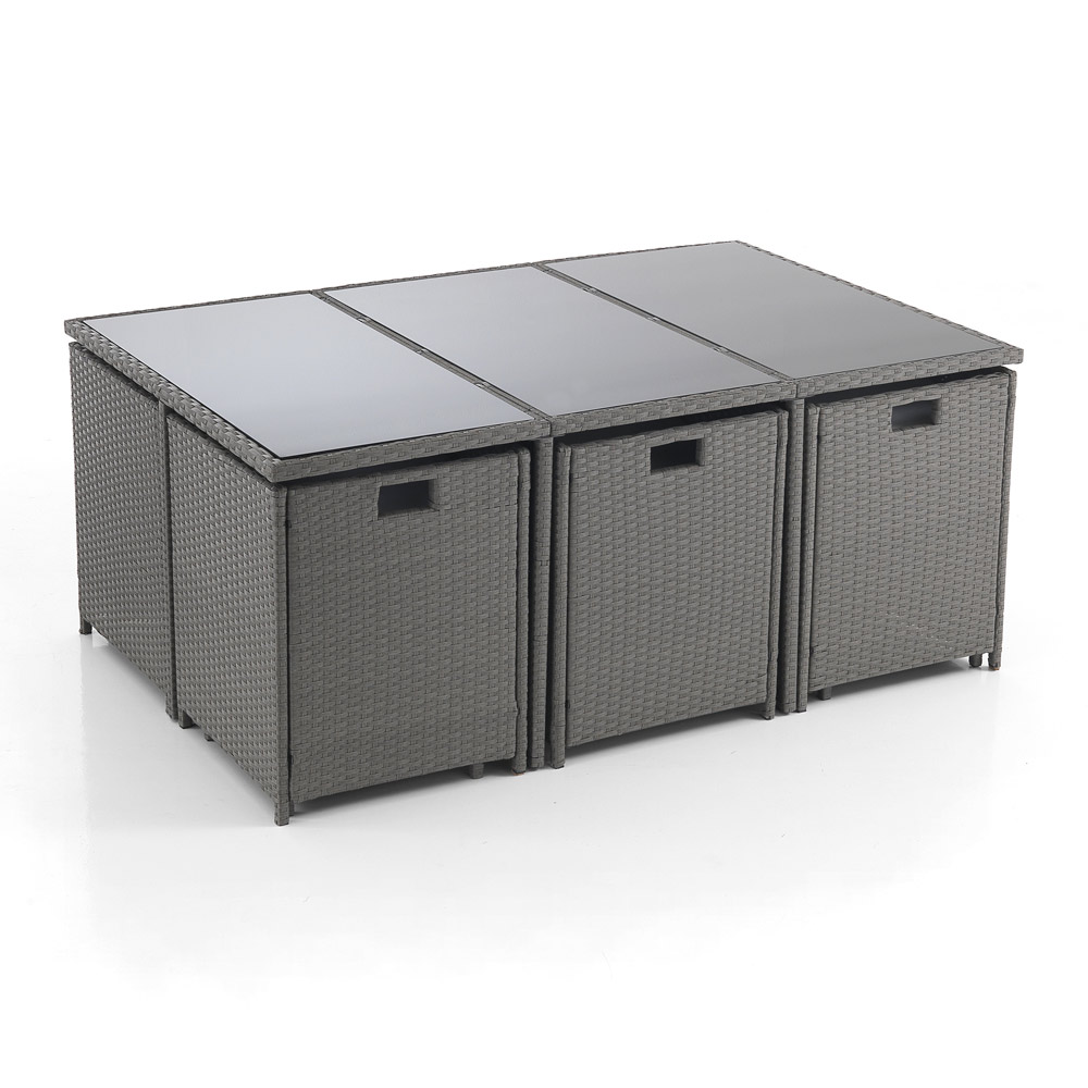 Este conjunto no es sólo una solución para sentarse; es un innovador sistema de mobiliario de exterior que responde a la necesidad de optimizar el espacio sin renunciar a la funcionalidad y la estética . Perfecto para quienes aprecian la belleza del orden y la practicidad , este conjunto es un complemento elegante para cualquier jardín, patio o terraza.