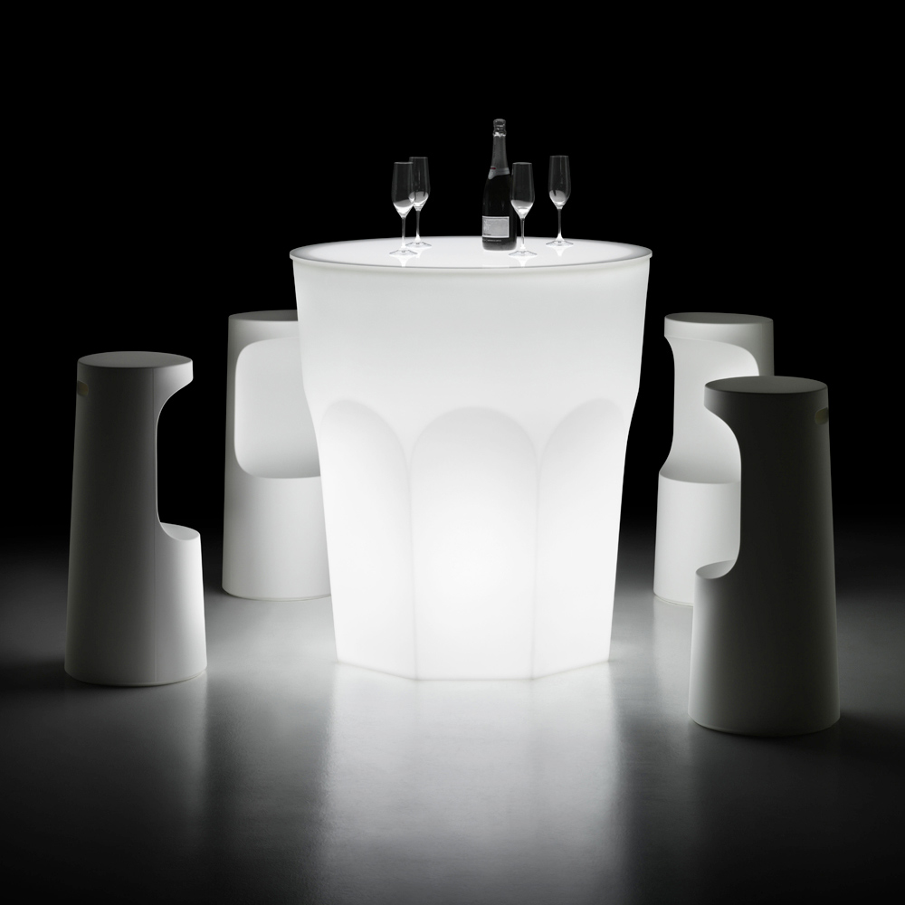 Mesa de luz de exterior de diseño en polietileno con luz LED Made in Italy.