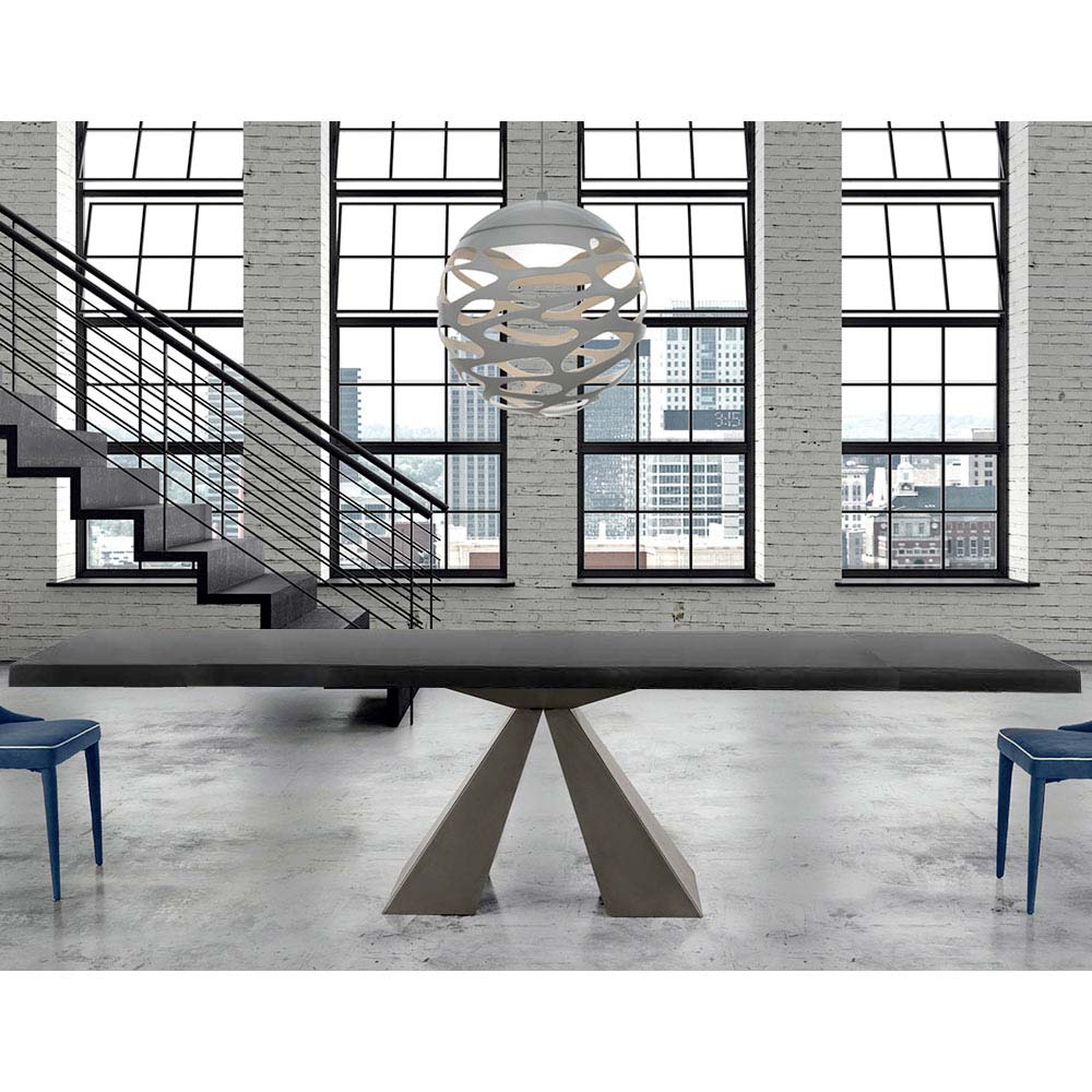 Mesa de cocina extensible en madera chapada y base de acero hecha a mano en Italia.