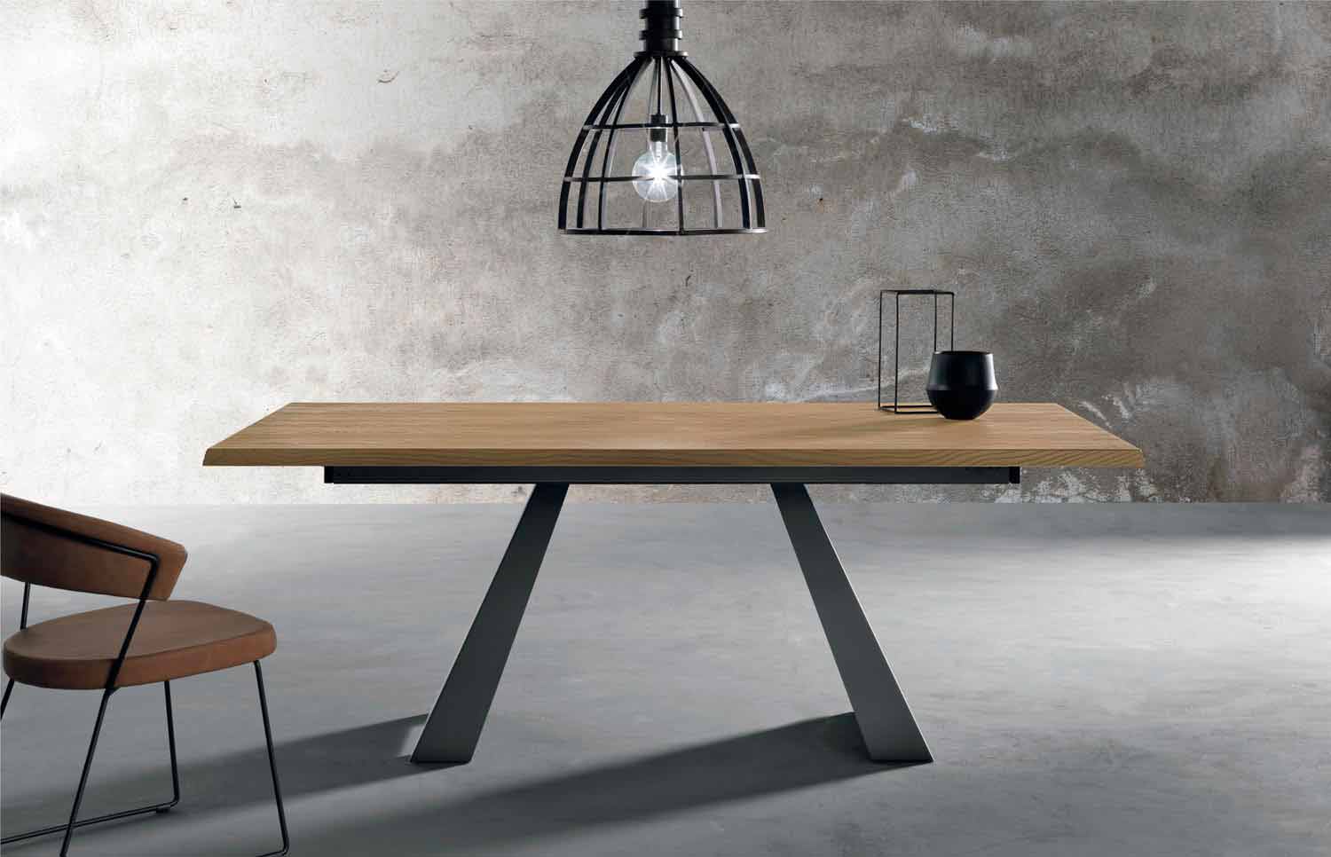 Zerba es la mesa de comedor extensible con desplazamiento lateral adecuada a cualquier contexto decorativo gracias a la unión de la madera con el metal.