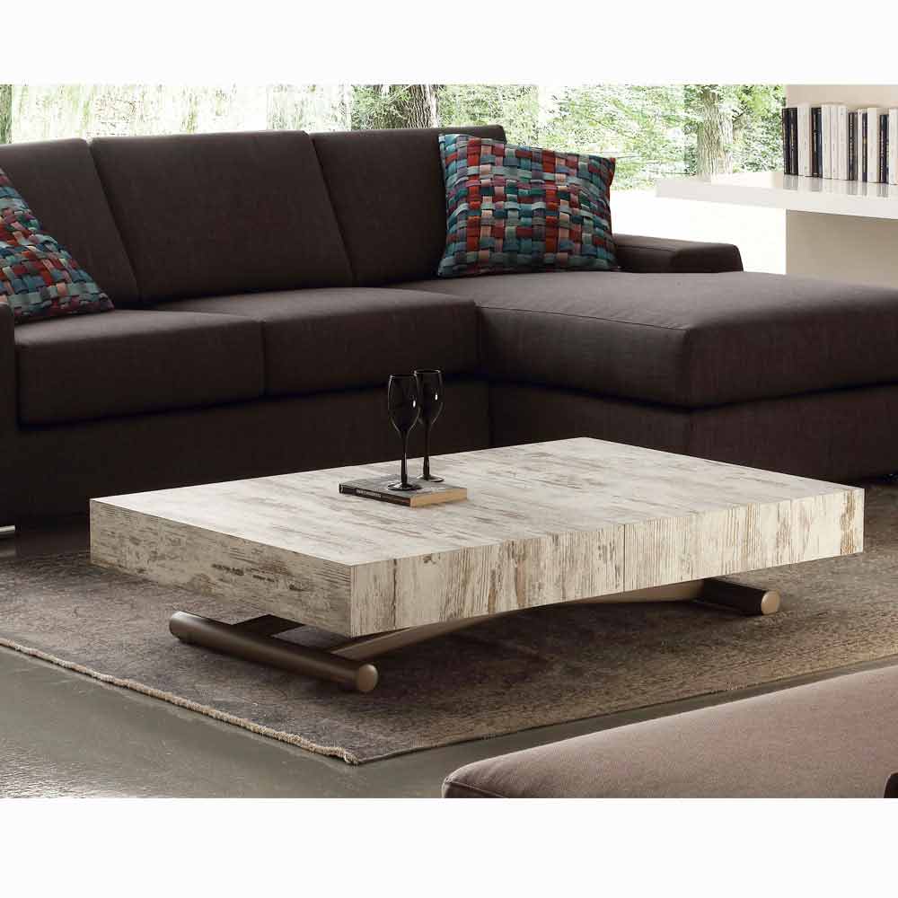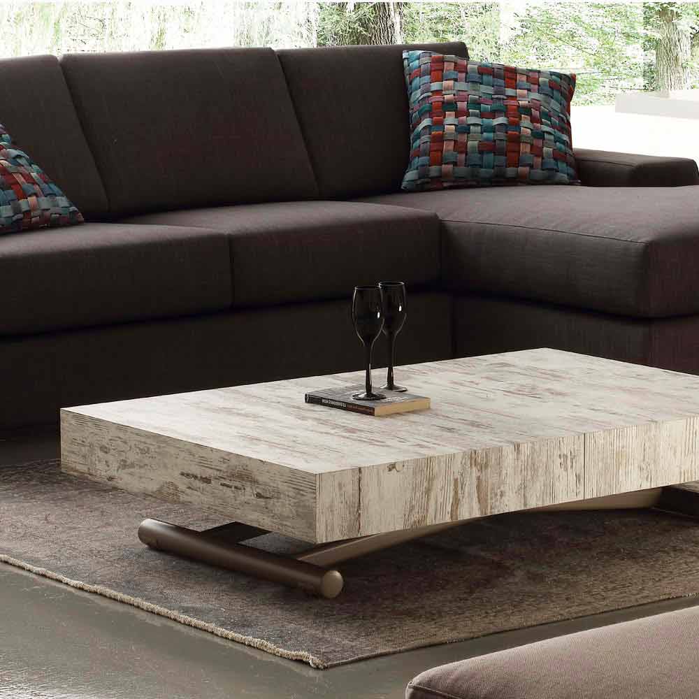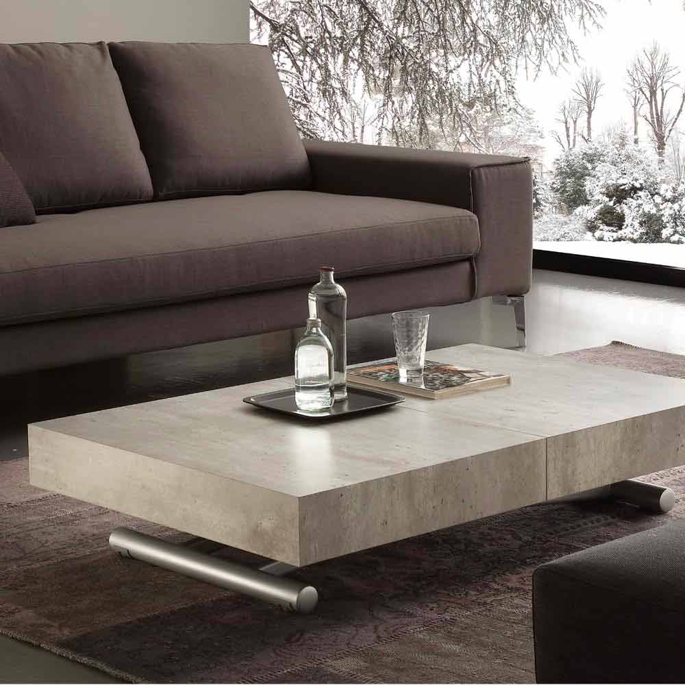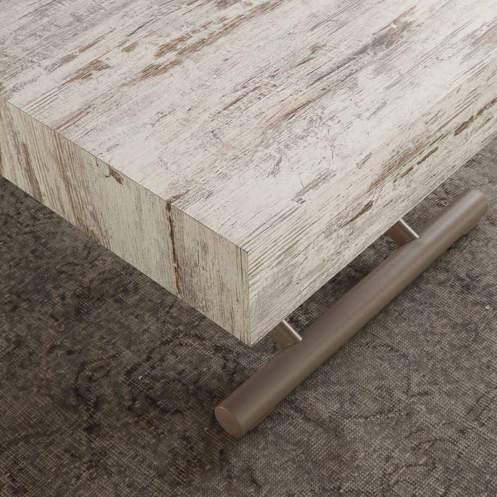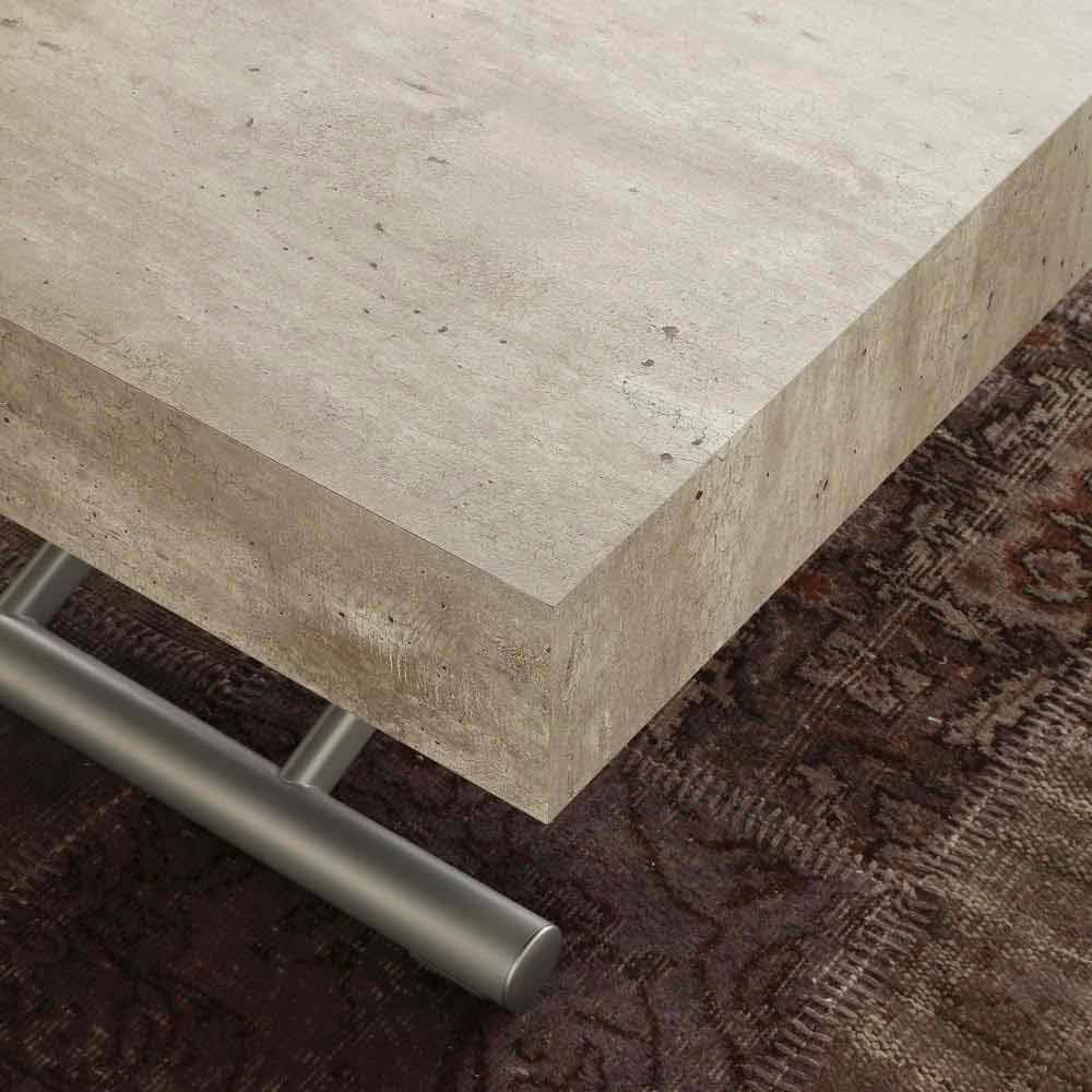 Mesa extensible de altura regulable con mecanismo a gas. Se compone de una estructura de metal y de un tablero en nobilitado High Quality, disponible en dos variantes diferentes: en color cemento o vintage.
