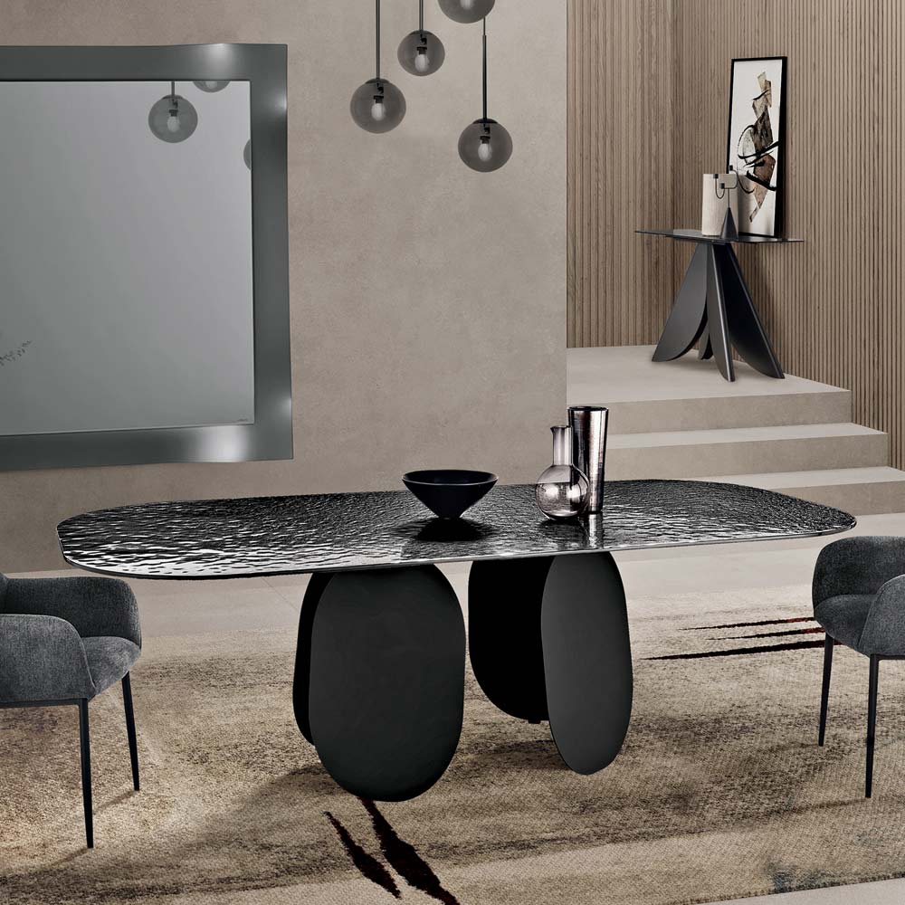 Una mesa de comedor de diseño, refinada y fabricada en Italia , ideal para amueblar con elegancia el comedor o la sala de estar . Esta versión rectangular conserva la esencia escultórica de la colección, creando un impacto visual audaz y armonioso en cualquier espacio.