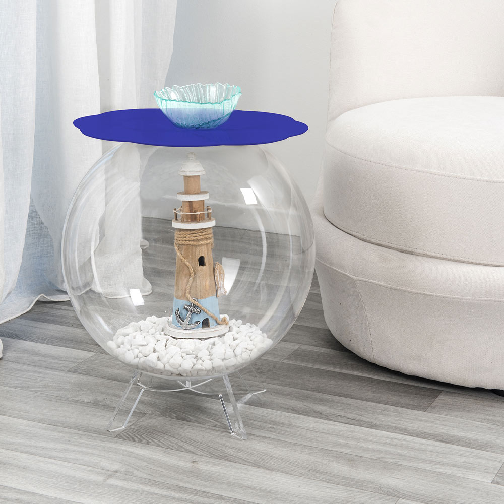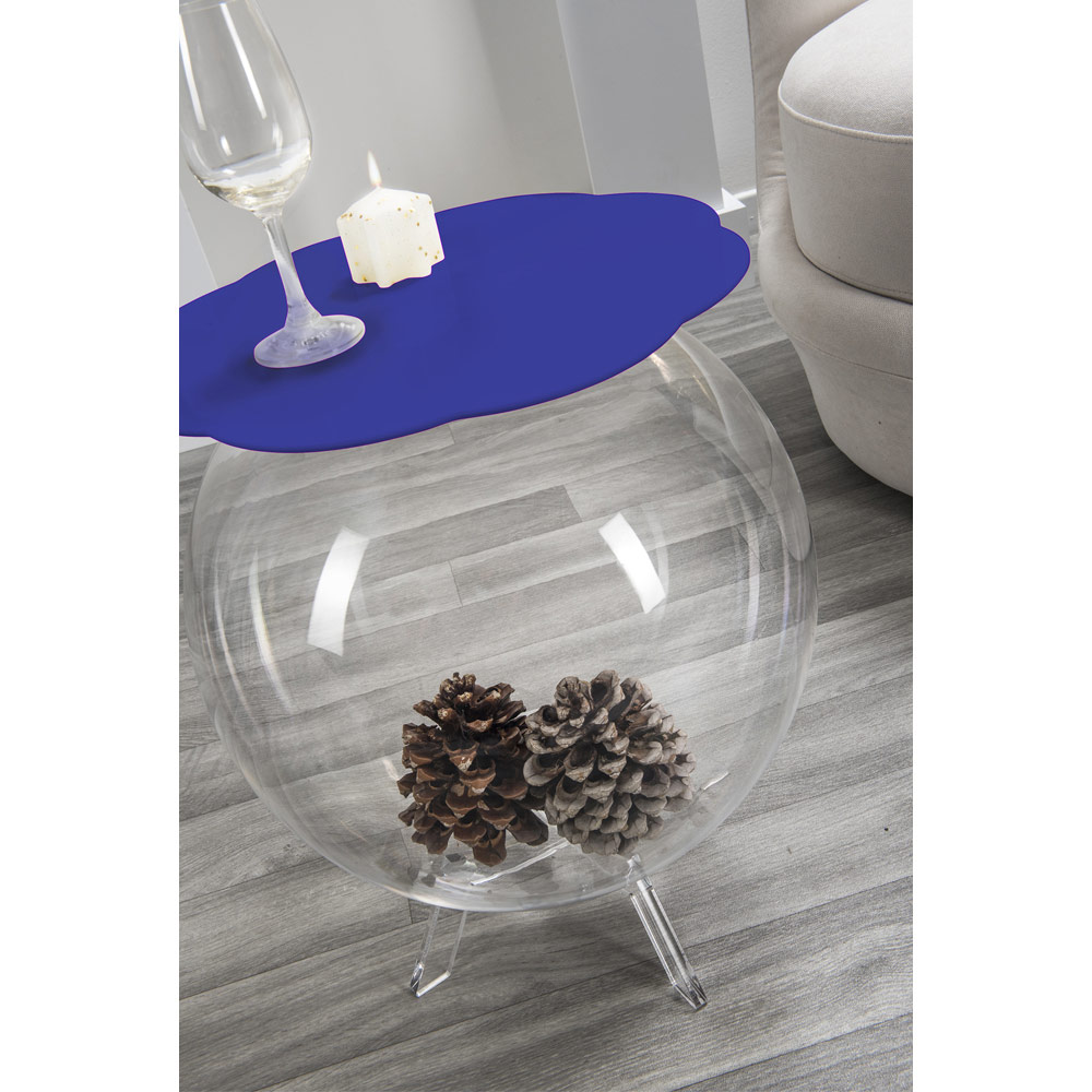 Mesa redonda azul / contenedor Biffy, diseño moderno hecho en Italia Mesa / contenedor de plexiglás con una estructura esférica que se puede utilizar como un jarrón para arreglos florales, como un acuario, como un contenedor para juguetes o como una canasta de lavandería. La transparencia de la mesa BIFFY la convierte en una pieza con un diseño discreto que se puede colocar fácilmente en el hogar. El estante está hecho de plexiglás de PMMA 100% de polímero de color azul virgen. El plexiglás es a prueba de golpes, indeformable, inalterable y aislante del calor. El brillo y el brillo se mantienen constantes y sin cambios a lo largo del tiempo. El plexiglás de PMMA de polímero virgen utilizado por es no tóxico, hipoalergénico, inodoro y antibacteriano. 100% reciclable Diseñado, diseñado y fabricado en Italia, con materiales italianos.