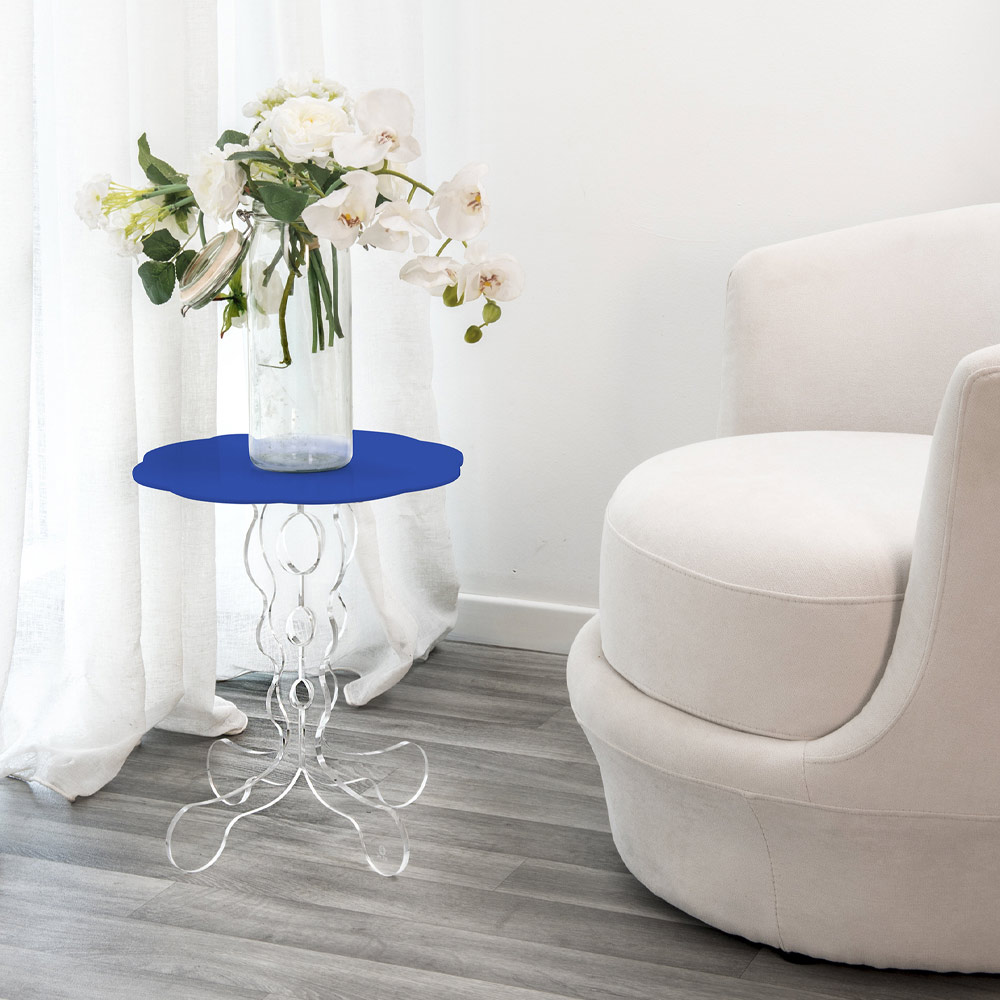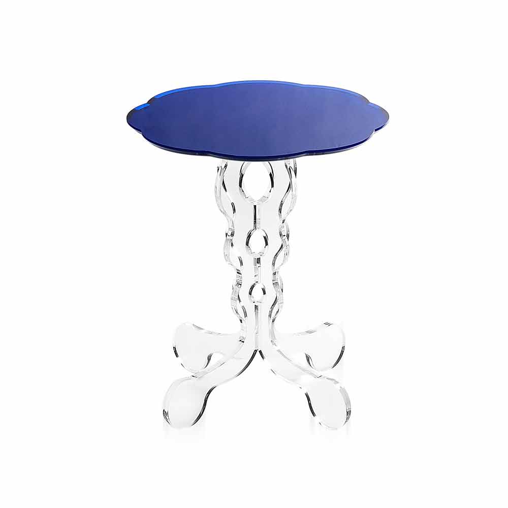 Mesa redonda azul diámetro 36 cm diseño moderno Janis, hecho en Italia Recuerdos árabes para la mesa Janis azul mediterránea: la base de plexiglás de PMMA 100% de polímero transparente, cortado con láser, otorga discreción, mientras que el estante azul claro con pigmento completo da un toque de color al entorno hogareño. El plexiglás es a prueba de golpes, indeformable, inalterable y aislante del calor. El brillo y el brillo se mantienen constantes y sin cambios a lo largo del tiempo. El plexiglás de PMMA de polímero virgen utilizado es no tóxico, hipoalergénico, inodoro y antibacteriano. Diseñado, diseñado y fabricado en Italia, con materiales italianos.