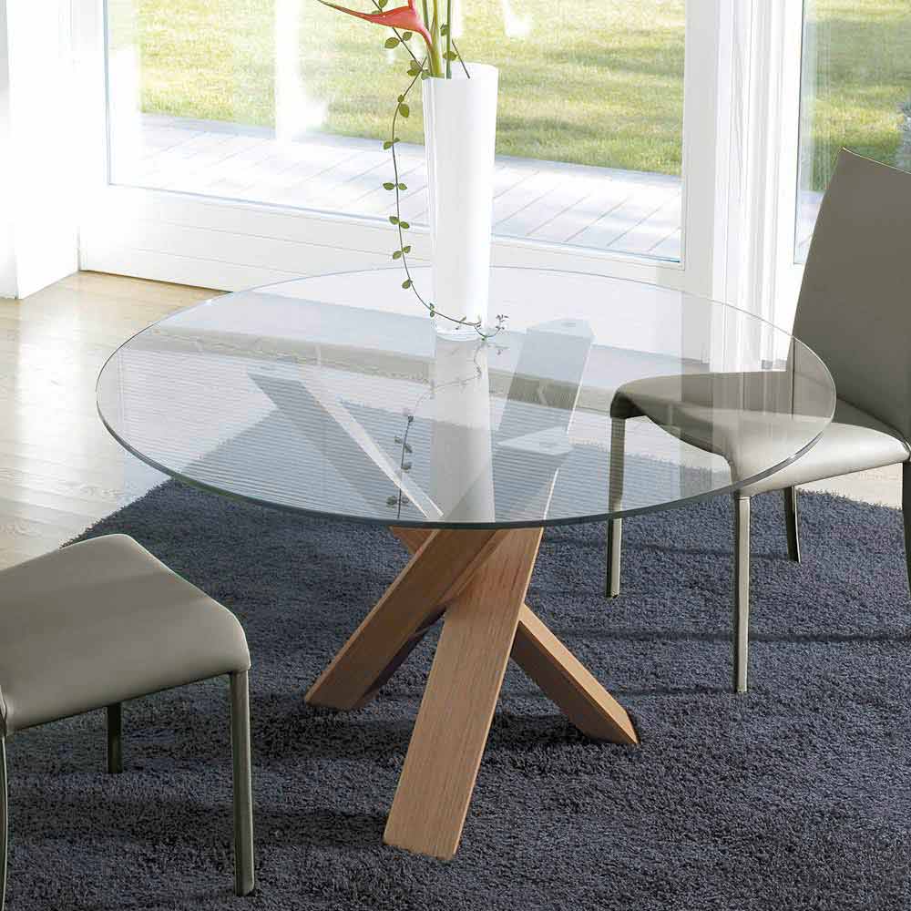 Mesa redonda de diseño d.160 superior de cristal realizada en Italia Cristal