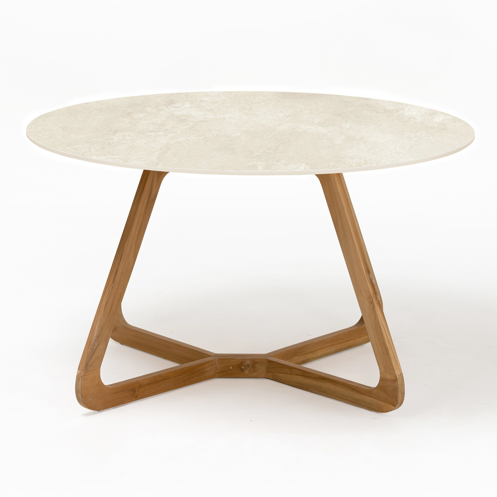 Mesa de jardín redonda de madera y cerámica, fabricada en Italia.