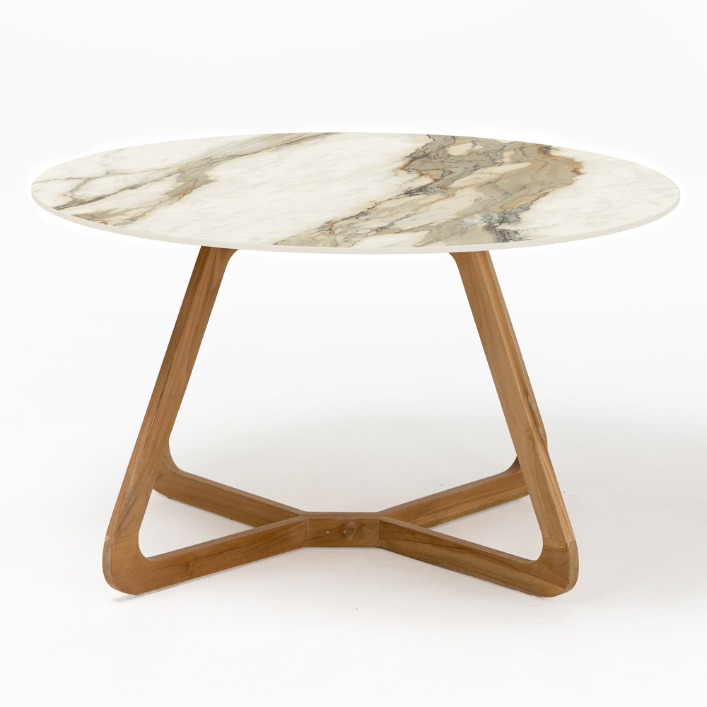 Mesa de jardín redonda de madera y cerámica, fabricada en Italia.