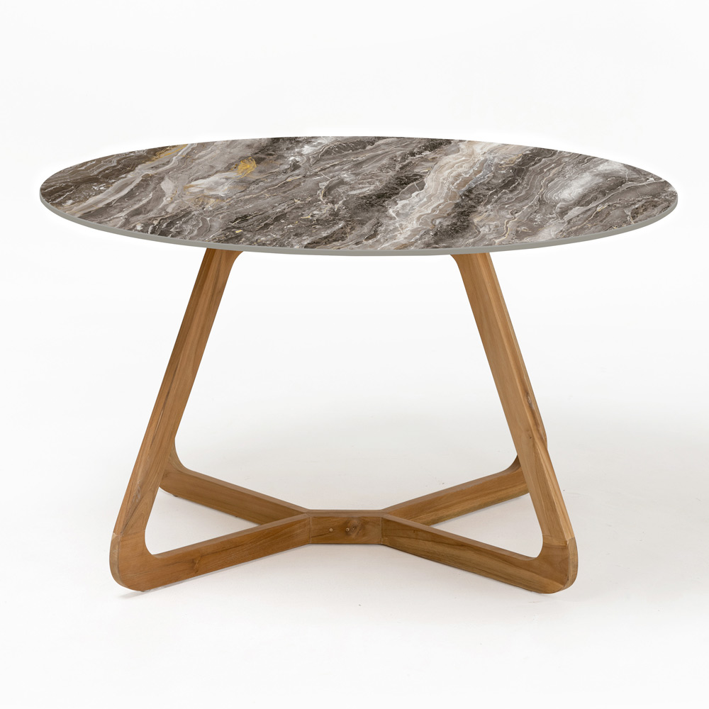 Mesa de jardín redonda de madera y cerámica, fabricada en Italia.