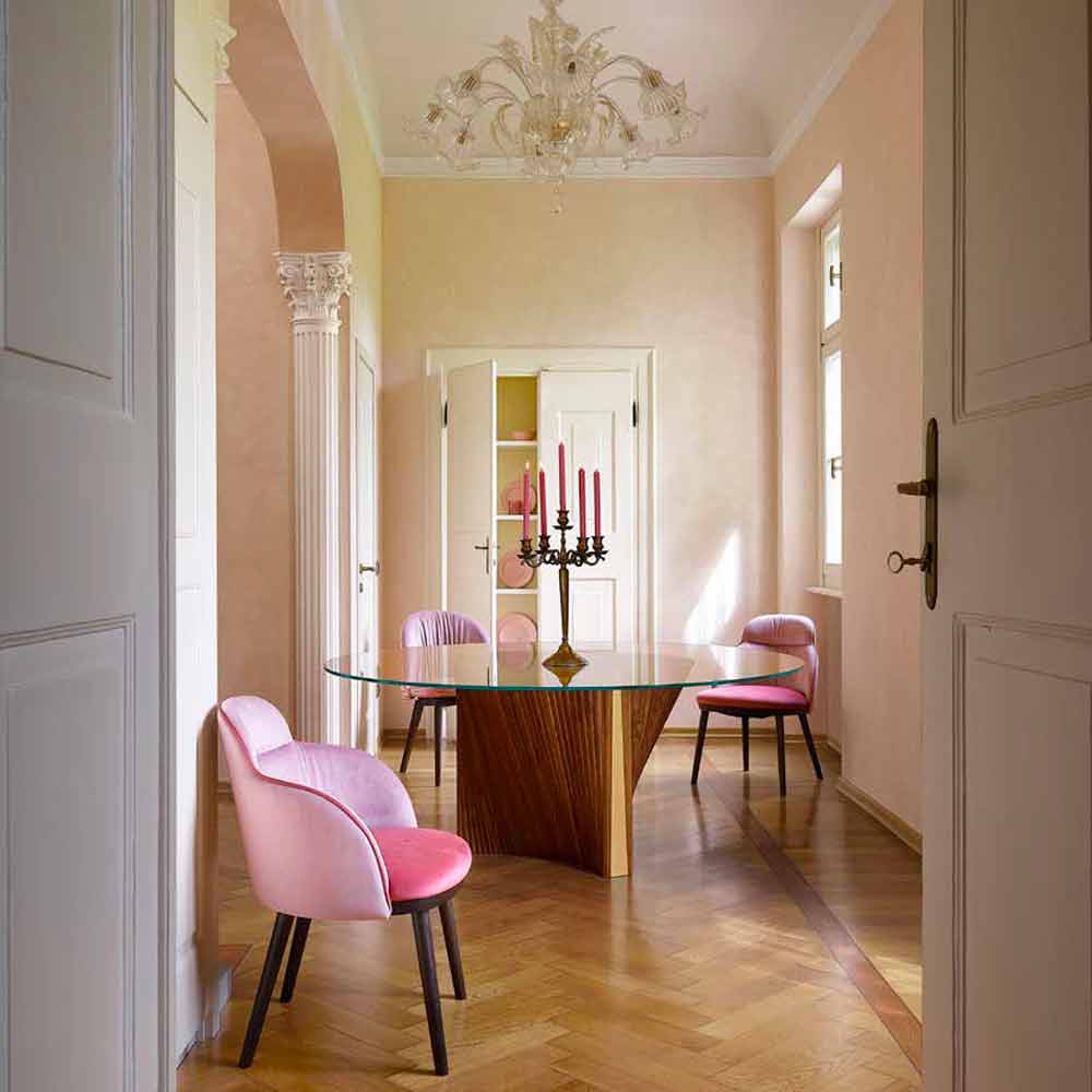 Mesa de comedor con tapa redonda en vidrio templado transparente de 1,2 cm de espesor y base realizada en listones de madera de fresno engrasados a mano . Esto último es precisamente lo que hace único al complemento gracias a sus fuertes líneas que dan sensación de movimiento y dinamismo y al mismo tiempo aseguran un producto sólido y robusto. Fabricado en Italia con materias primas de alta calidad , cada mesa se caracteriza por un estilodiscreto y sofisticado que llama la atención al convertirse en el protagonista indiscutible del entorno y combinar funcionalidad y diseño . Gracias a su fuerte personalidad y la maravillosa combinación de la elegancia del vidrio y la majestuosidad de la madera, este producto es capaz de amueblar comedores y cocinas con un gusto contemporáneo en busca de un objeto único, una verdadera obra de arte .