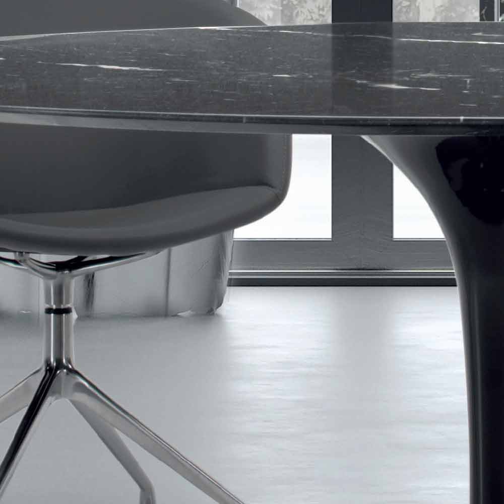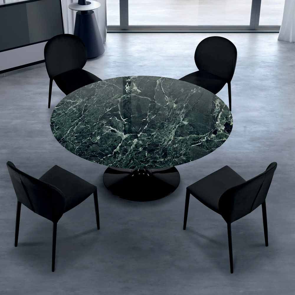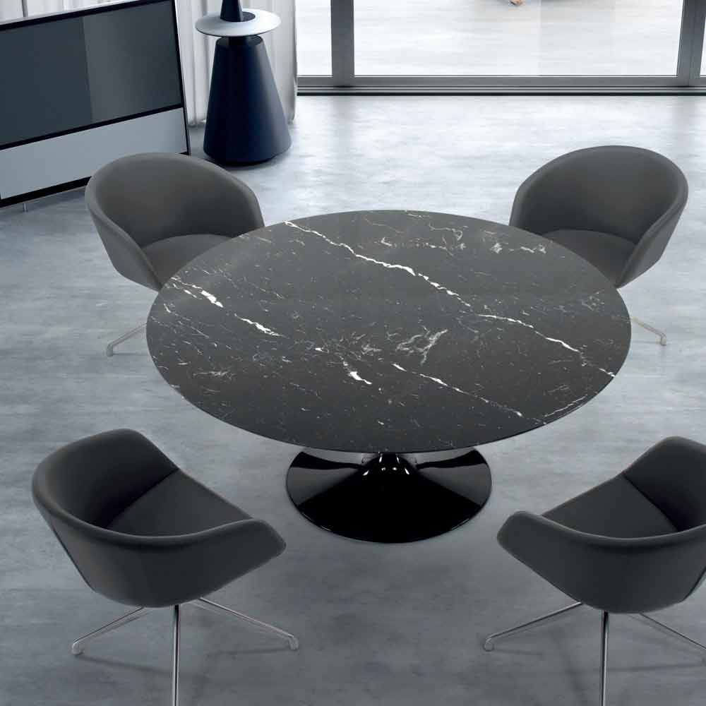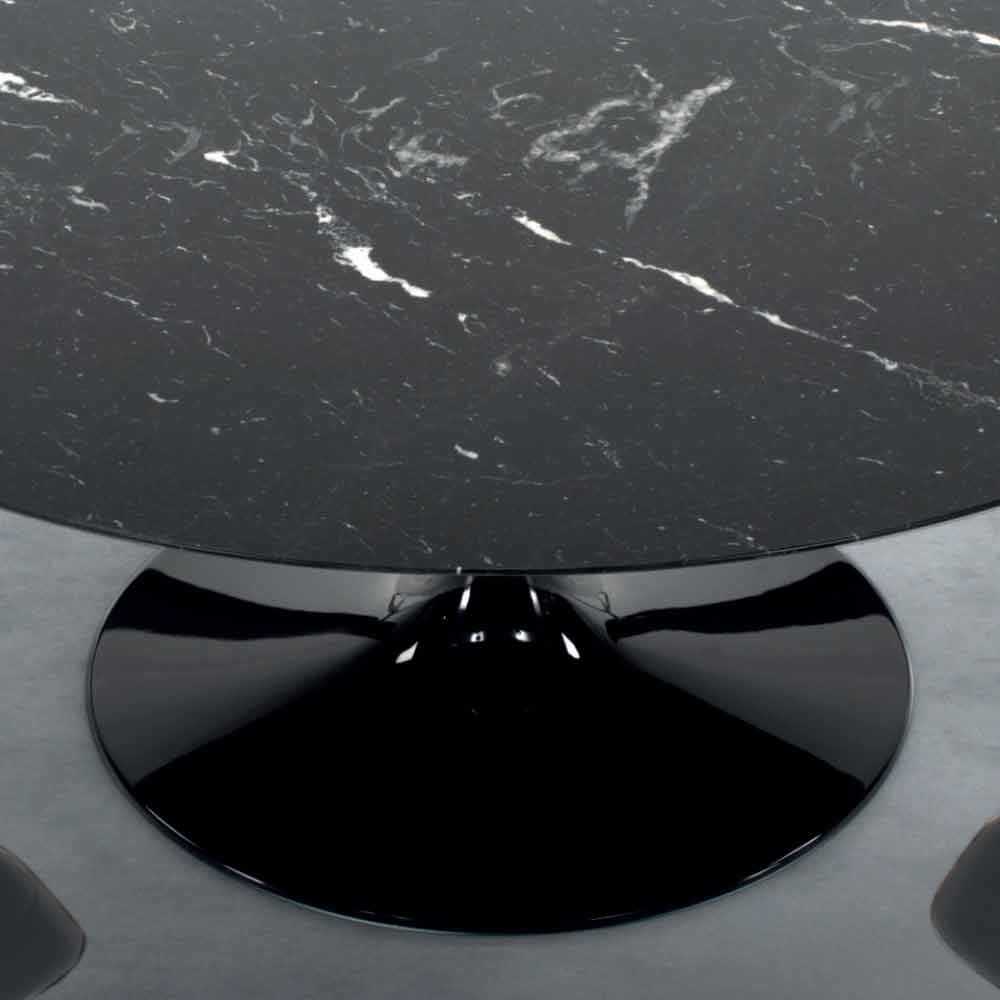 Mesa redonda moderna con tapa de mármol de Carrara o Nero Marquinia hecha a mano en Italia.