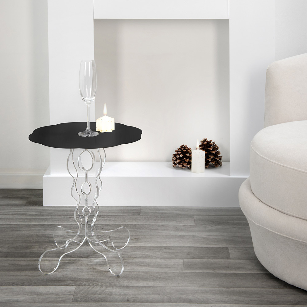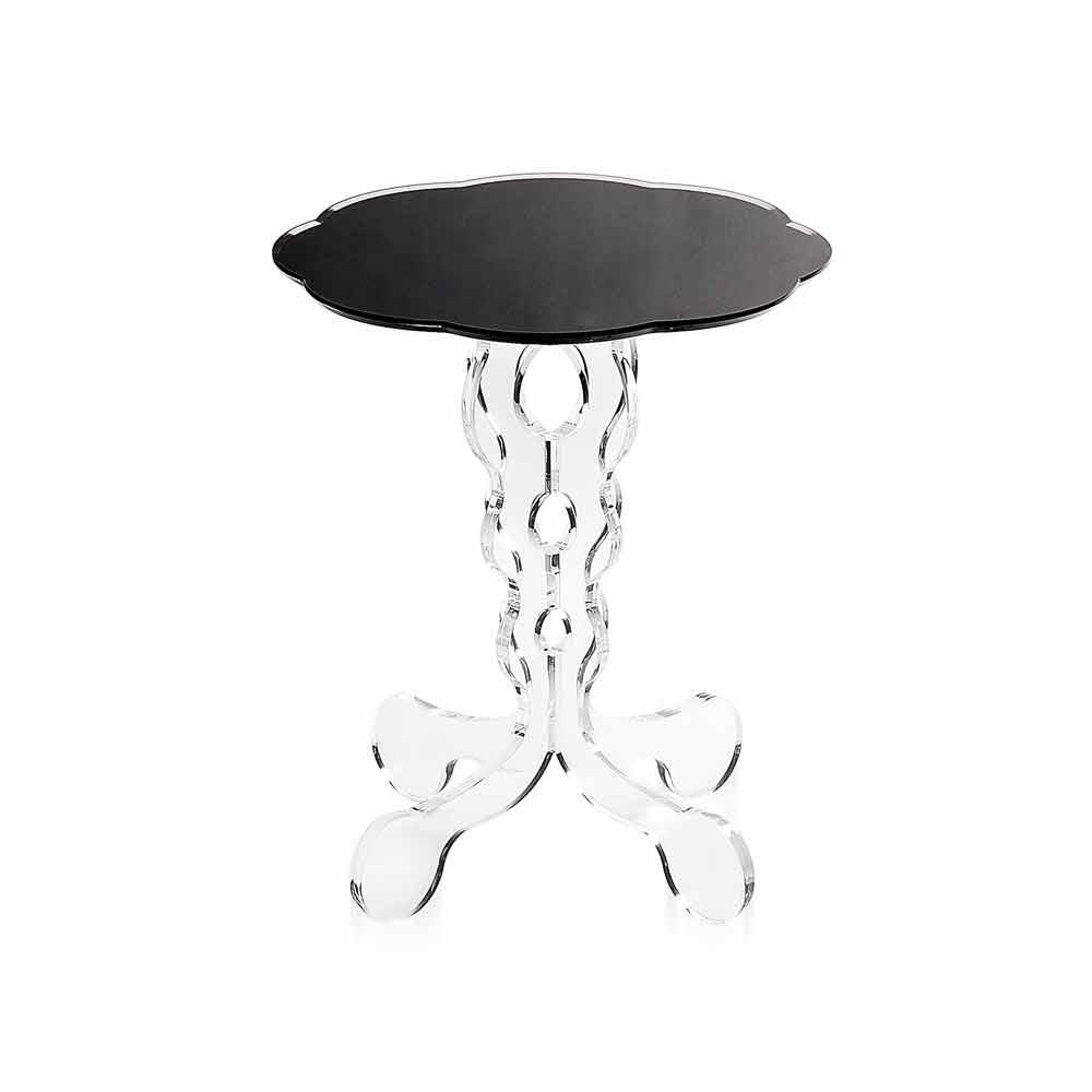 Mesa redonda negra con diámetro de 36 cm, diseño moderno Janis, fabricada en Italia Referencias moriscas para la mesa de centro negra de Janis: la base de plexiglás 100% PMMA de polímero transparente, cortado con láser, otorga discreción, mientras que la parte superior de pigmento negro le da un toque de color al hogar. El plexiglás es a prueba de golpes, indeformable, inalterable y aislante del calor. El brillo y el brillo se mantienen constantes y sin cambios a lo largo del tiempo. El plexiglás de PMMA de polímero virgen utilizado es no tóxico, hipoalergénico, inodoro y antibacteriano. Diseñado, diseñado y fabricado en Italia, con materiales italianos.