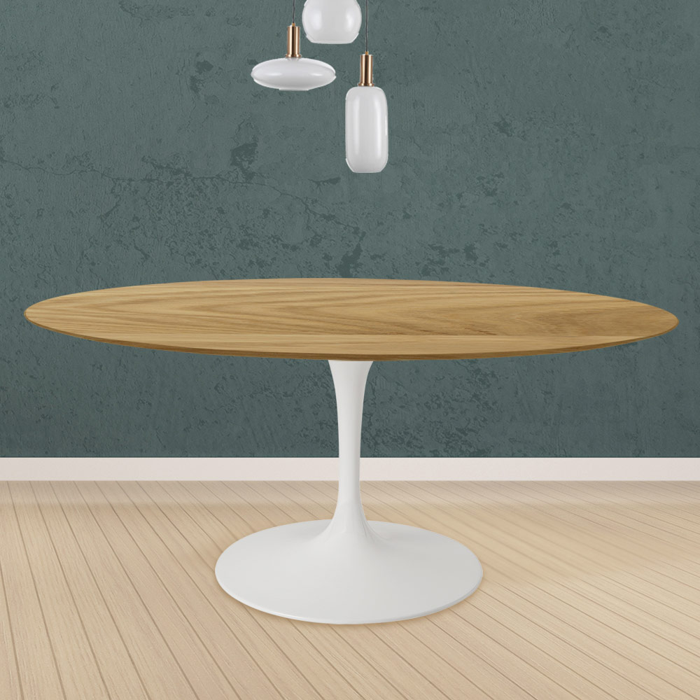 Mesa de comedor con tapa redonda en roble natural y base de aluminio pulido totalmente made in Italy . Este producto está diseñado para amueblar con gusto y originalidad cada espacio de vivienda y cocina gracias a sus acabados lineales y elegantes. La unión entre el roble natural de la tapa y el aluminio pulido de la base garantiza calidad y resistencia y da un toque innovador y particular a la propia mesa. Este mueble puede insertarse en cualquier estilo de mobiliario, desde el moderno al contemporáneo, gracias a sus colores y vetas naturales de la madera que confieren a la estancia un ambiente cálido y acogedor.