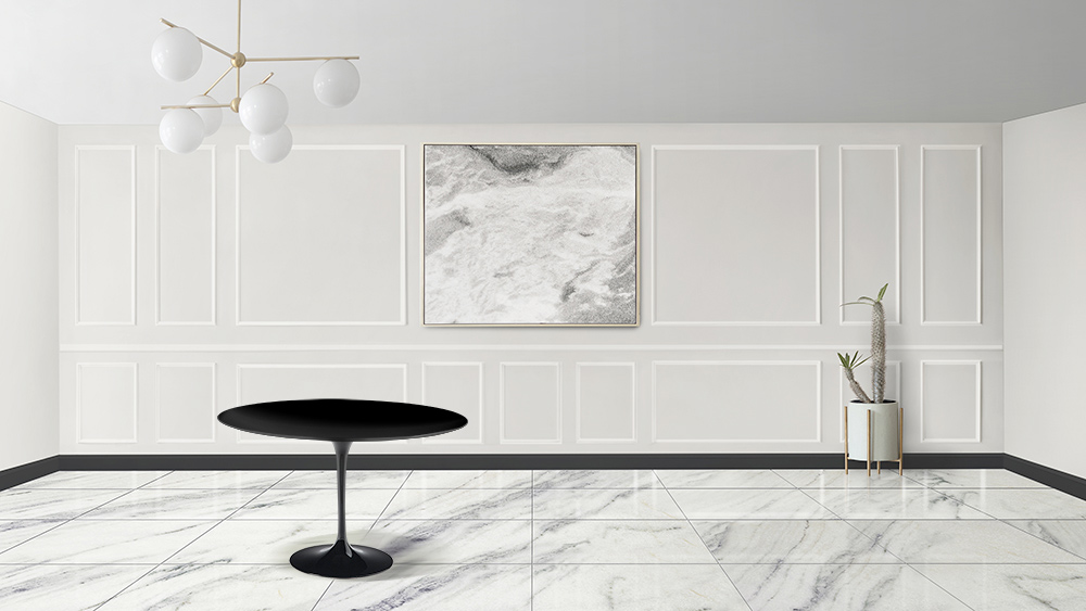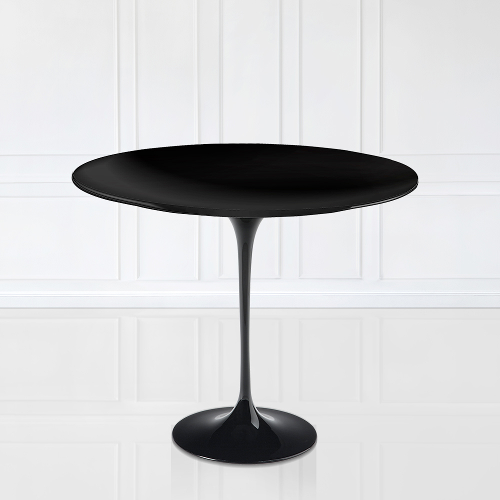 Mesa de comedor totalmente made in Italy con tablero redondo en laminado líquido negro y base en aluminio pulido negro . El diseño seductor y refinado de este elemento permite amueblar con gusto y refinamiento cualquier tipo de salón y cocina gracias a la forma redonda que da un toque de originalidad a la estancia aportando frescura y linealidad al estilo. Es fundamental elegir con cuidado la mesa de comedor, ya que se coloca en el lugar más cálido y acogedor de la casa y debe crear una mezcla perfecta con el entorno que la rodea: la versatilidad de esta mesa te permite hacerlo en cualquier lugar. Este mueble es ideal para completar cualquier estancia con sobriedad gracias a sus acabados sencillos y esenciales. La tapa de laminado líquido y la base de aluminio pulido hacen que esta mesa sea adecuada y funcional para cualquier ocasión de uso.