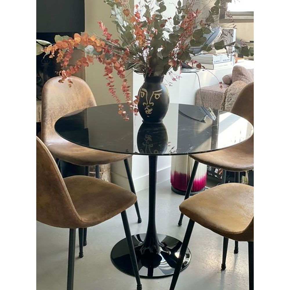 Mesa de comedor con tablero redondo en mármol marquinia negro y base en aluminio pulido made in Italy