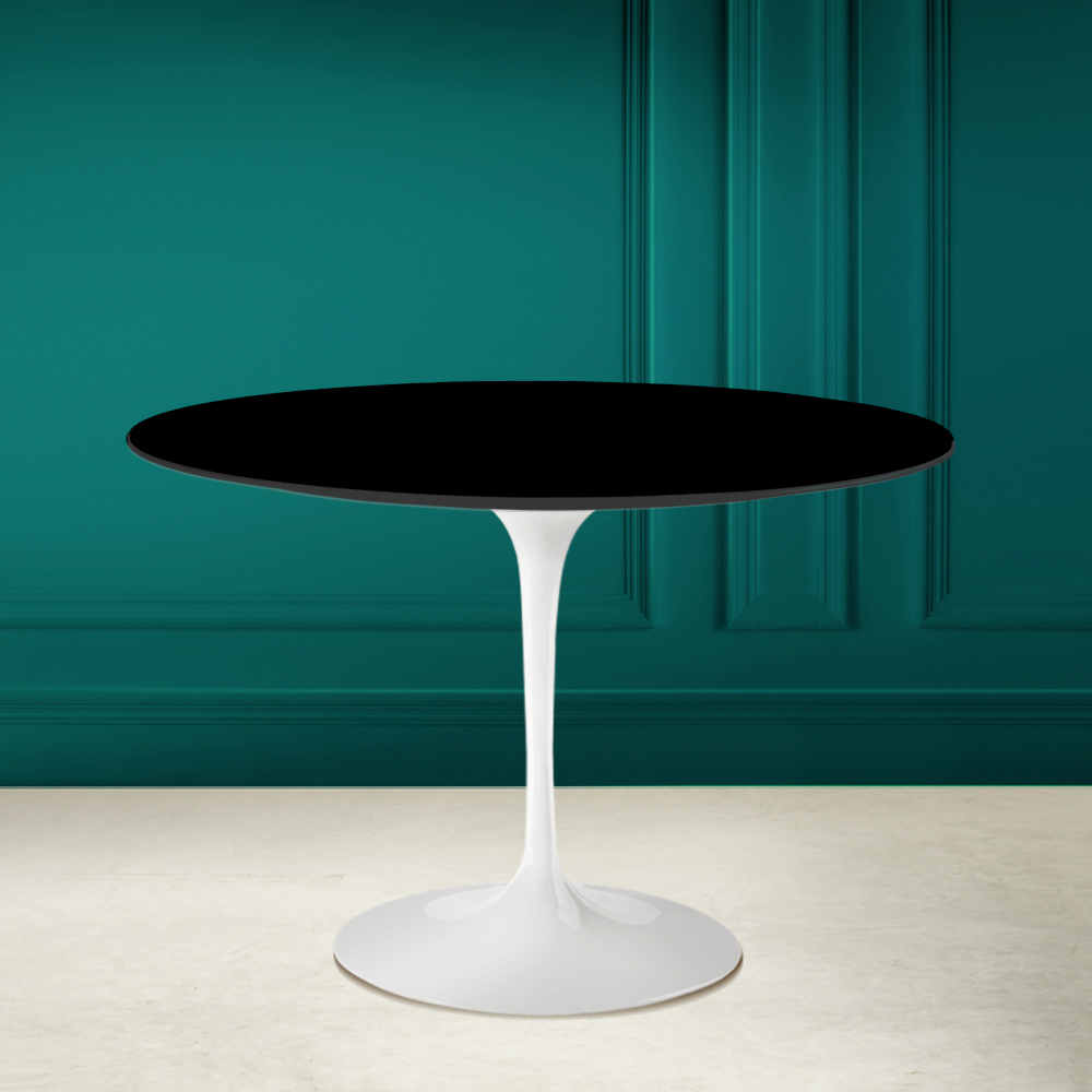 Mesa de comedor con tapa redonda en cerámica negra absoluta Made in Italy