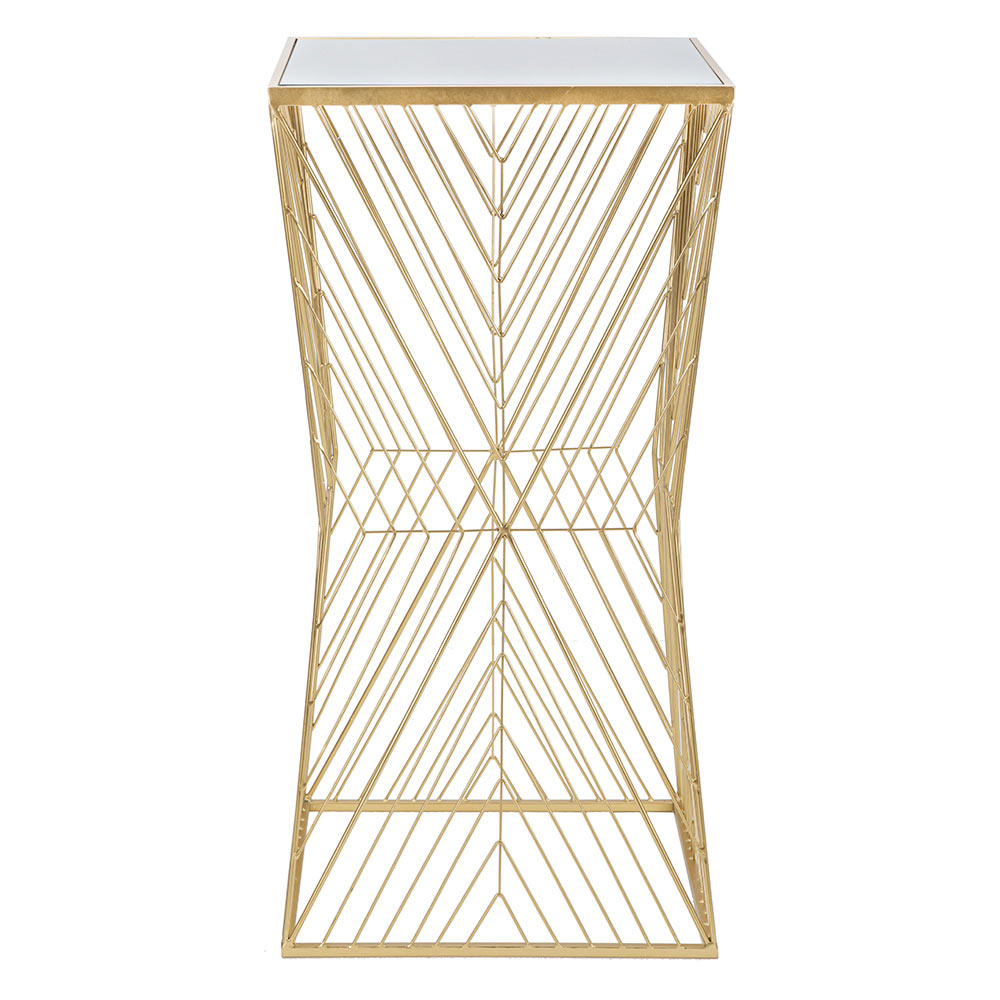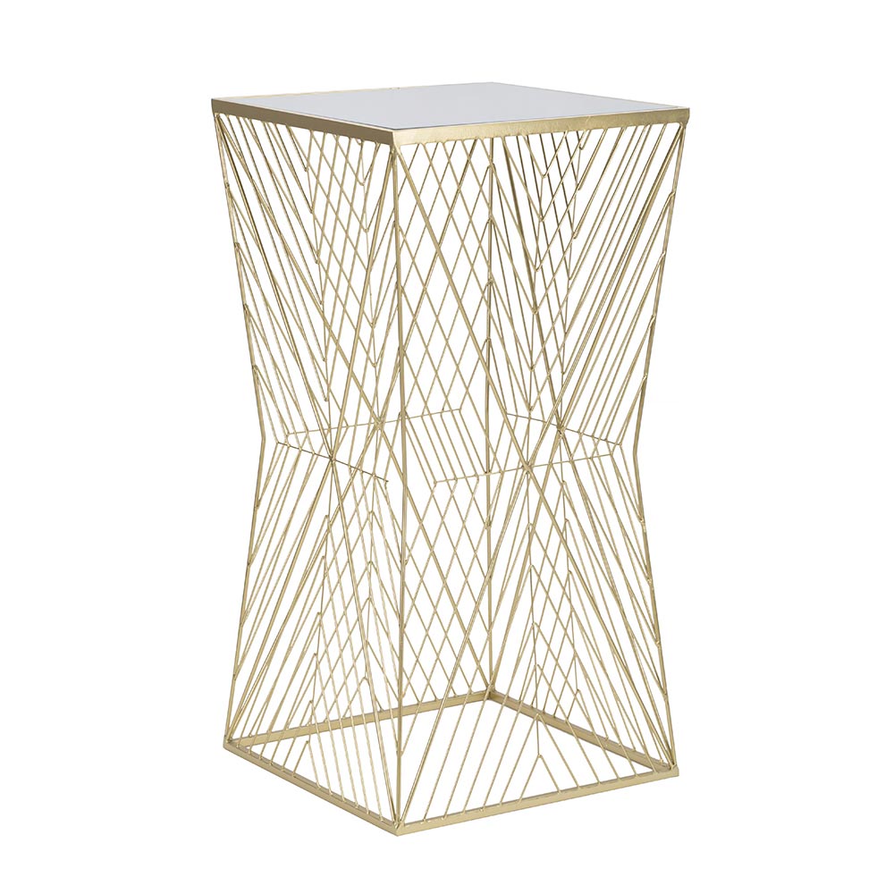 La tapa de cristal, enmarcada en un marco dorado, es práctica y fácil de limpiar, y ofrece una superficie ideal para tus objetos decorativos favoritos, desde una lámpara de diseño hasta una planta exuberante. La estructura ofrece un toque de brillo que puede animar cualquier estancia, desde el salón hasta el dormitorio, sin exagerar en la opulencia.