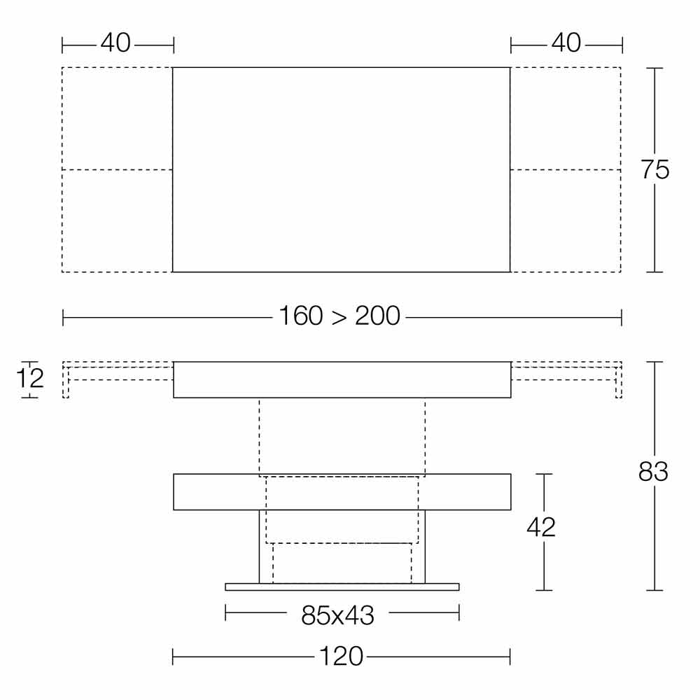 La tapa es extensible con dos extensiones laterales de 40cm cada una (internas).
