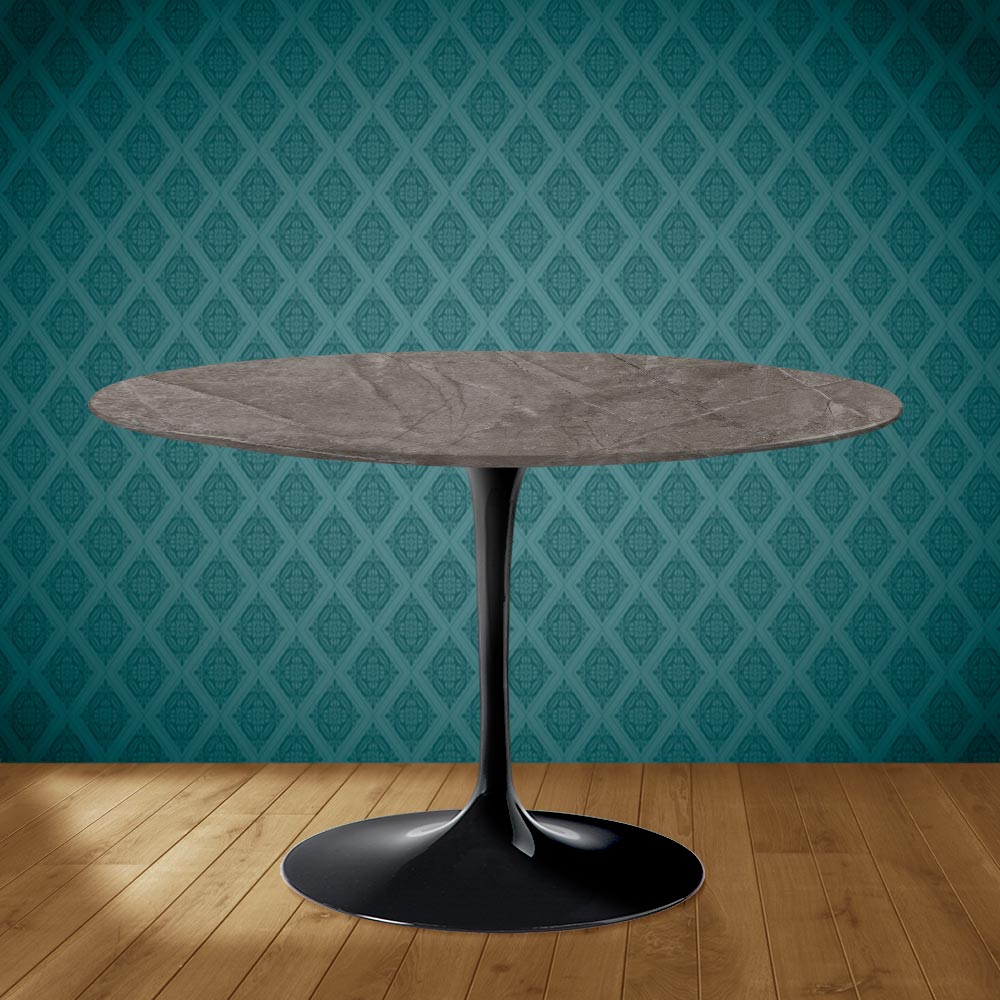 Mesa de comedor con tapa redonda de cerámica Kira, efecto mármol gris pilpis mate , y base de aluminio pulido totalmente Made in Italy. Los acabados lineales y refinados crean un elemento fácil de insertar en ambientes de estar y cocinas amuebladas con diferentes estilos. La unión entre la cerámica Kira y el aluminio pulido hace que esta mesa sea apta para todas las ocasiones de uso, creando una estancia acogedora. Las palabras clave para describir este producto son prácticidad y funcionalidad sin olvidar la elegancia dada por el particular colorido y grafismo de la cerámica Kira.