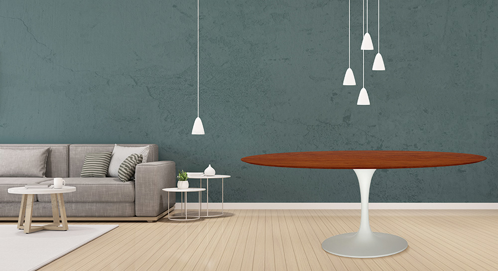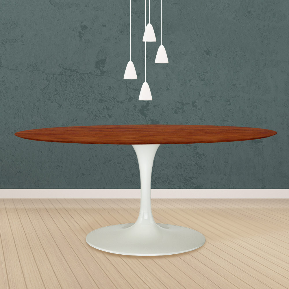 Mesa de comedor con tapa ovalada en roble teñido cerezo y base de aluminio pulido totalmente made in Italy . La inusual unión entre la forma ovalada y el tablero de roble teñido de cerezo confiere a esta mesa un toque de singularidad y elegancia inconfundible . Es perfecta para completar la decoración de cualquier salón y cocina gracias a sus acabados sencillos y refinados que confieren a la estancia un ambiente cálido y acogedor. Los materiales utilizados para su construcción garantizan calidad y resistencia incluso con el paso del tiempo y hacen que este producto sea apto para cualquier situación y ocasión de uso.