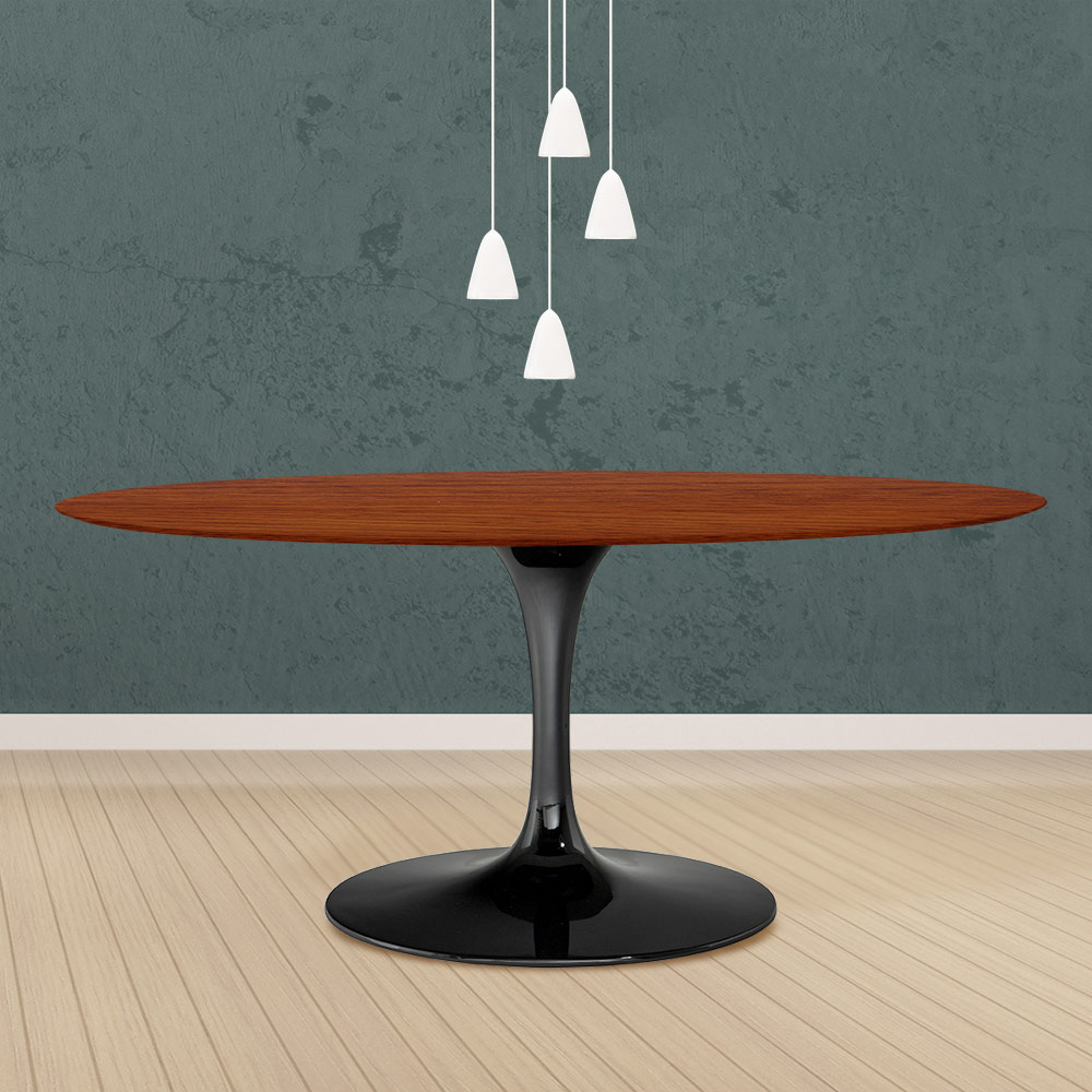 Mesa de comedor ovalada en roble teñido cerezo y base de aluminio pulido Made in Italy
