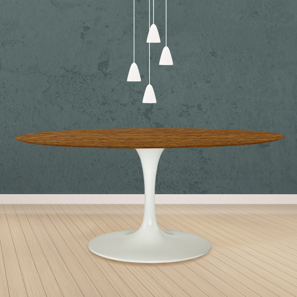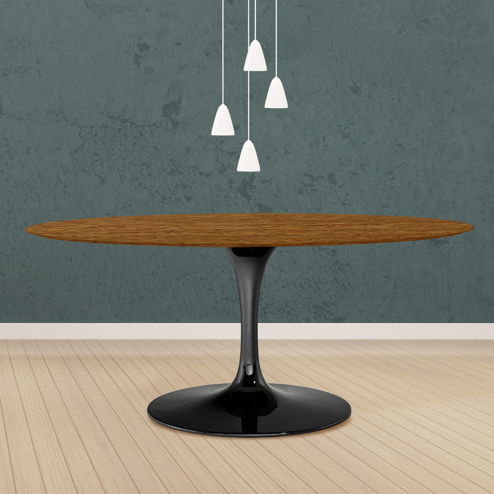 Mesa de comedor ovalada en roble teñido de nogal claro y base de aluminio pulido Made in Italy