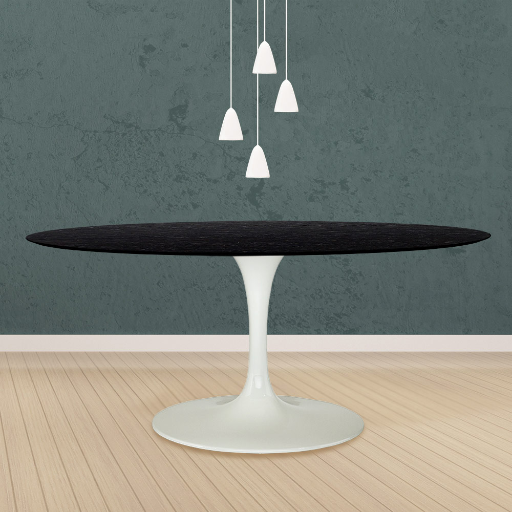 Mesa de comedor con tapa ovalada en roble teñido de negro y base de aluminio pulido totalmente made in Italy . La unión sin precedentes entre la forma ovalada y la tapa de roble teñido de negro confiere a esta mesa un toque de singularidad y elegancia inconfundible . Es perfecta para completar la decoración de cualquier salón y cocina gracias a sus acabados sencillos y refinados que confieren a la estancia un ambiente cálido y acogedor. Los materiales utilizados para la fabricación garantizan calidad y resistencia incluso con el paso del tiempo y hacen que este producto sea adecuado para cualquier situación y ocasión de uso.