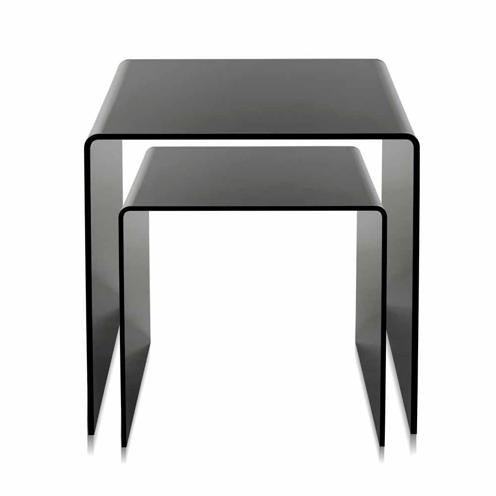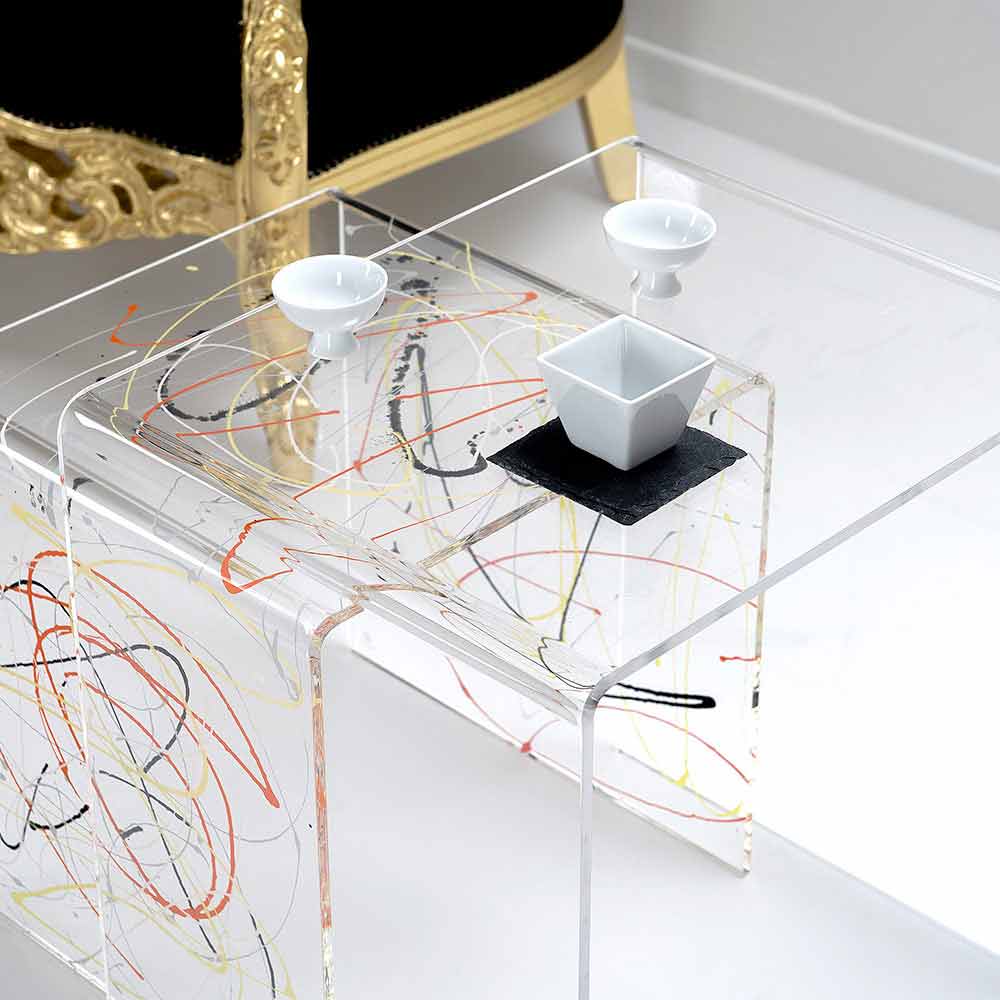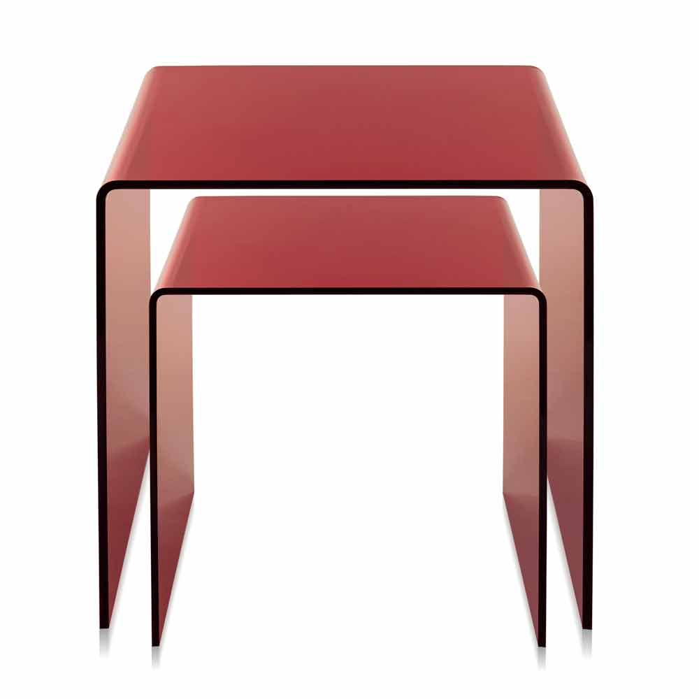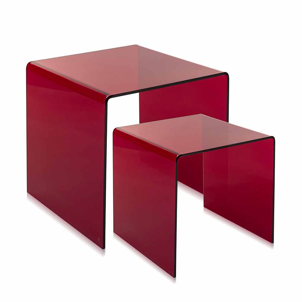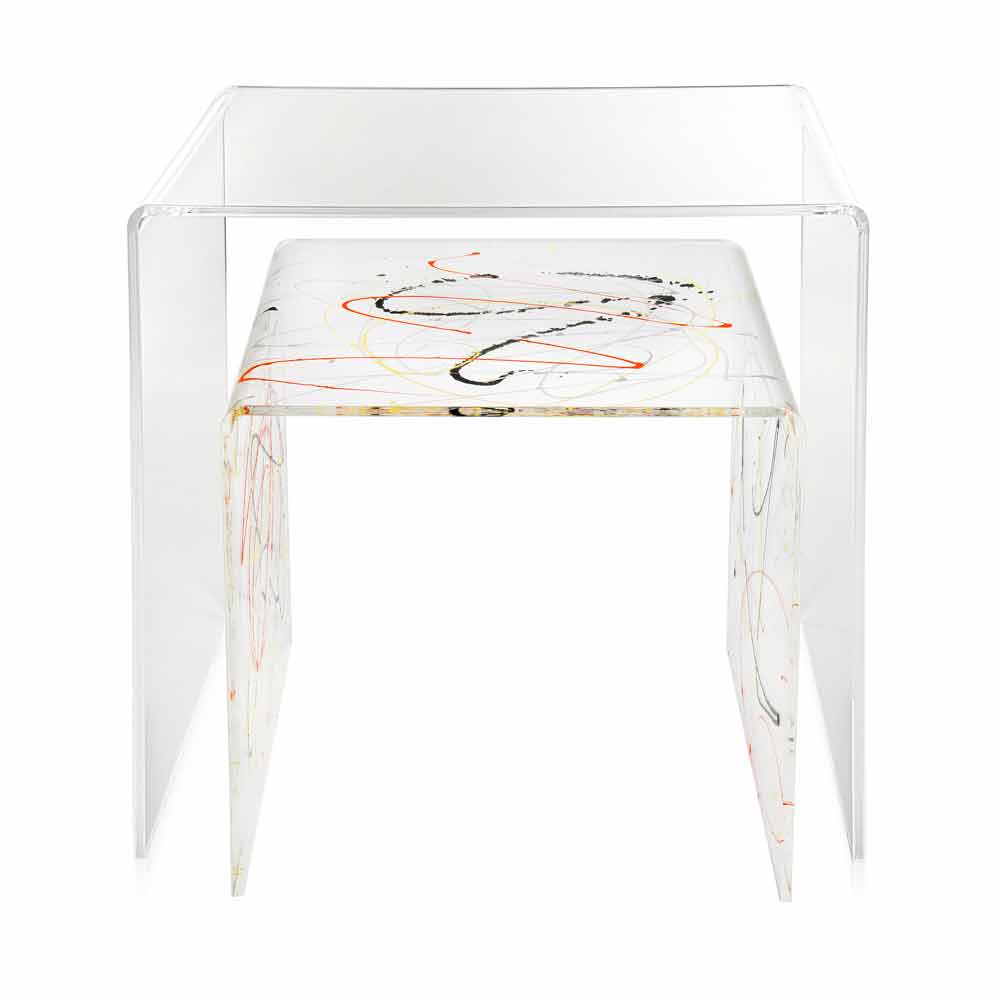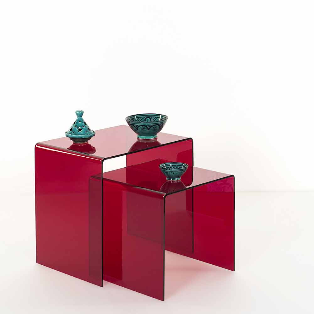 Mesitas de plexiglás coloreadas hechas en Italia, Spinoso. Spinoso es un fantástico conjunto de tablas inspiradas en las geometrías de los años 80 y perfectas para colocar en cualquier entorno.