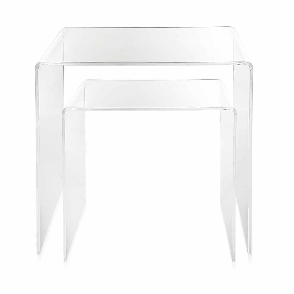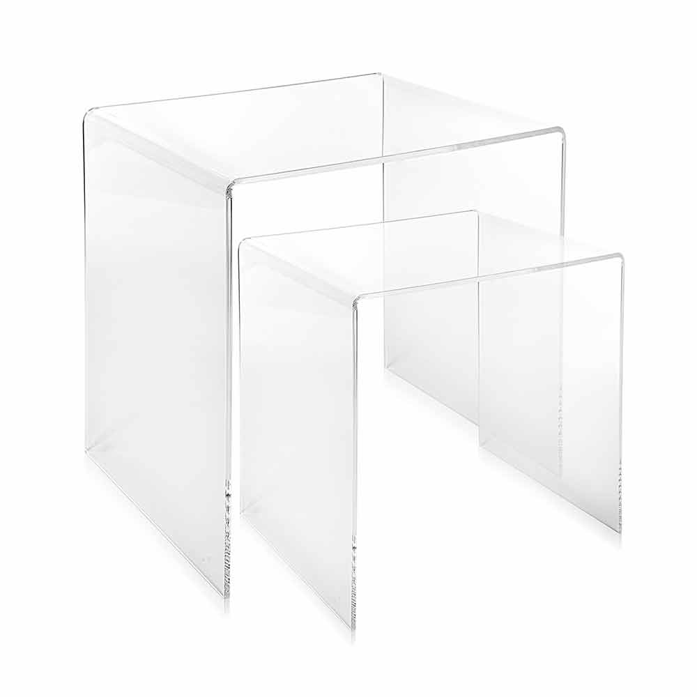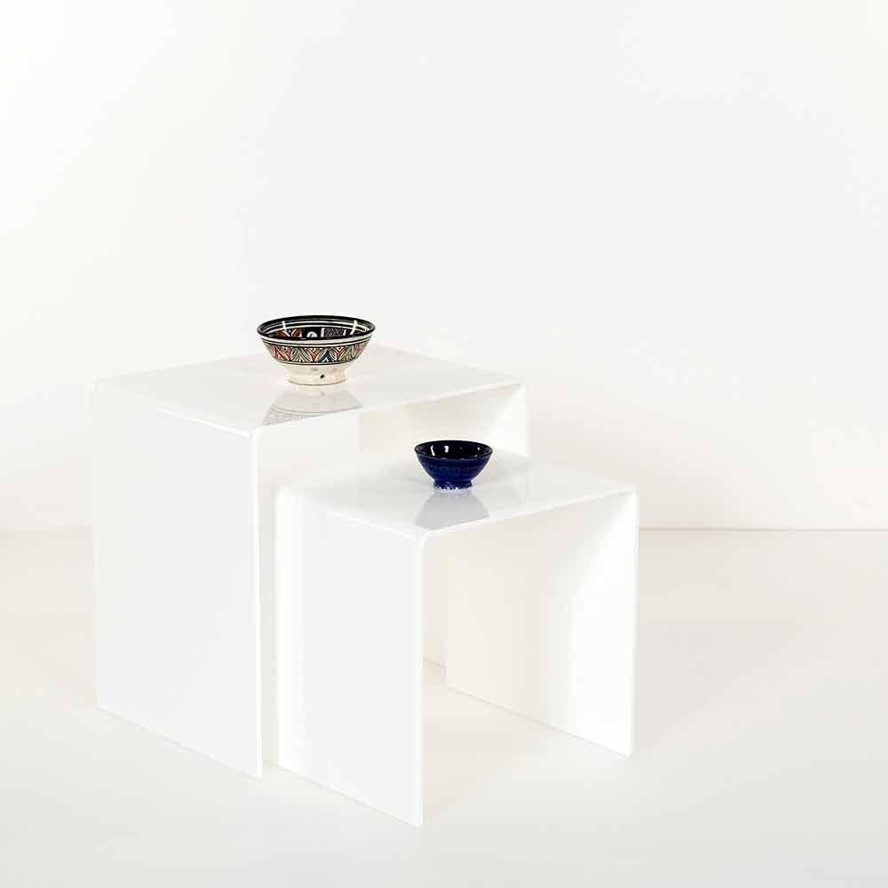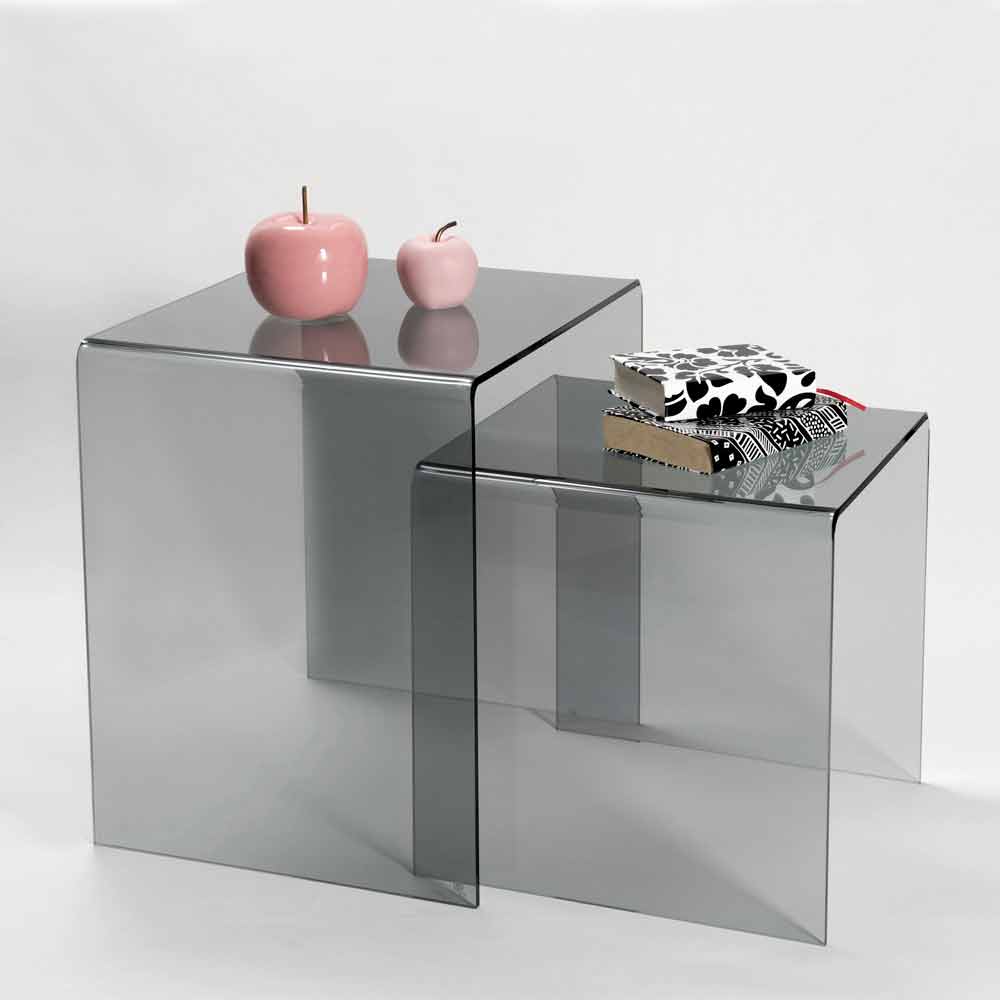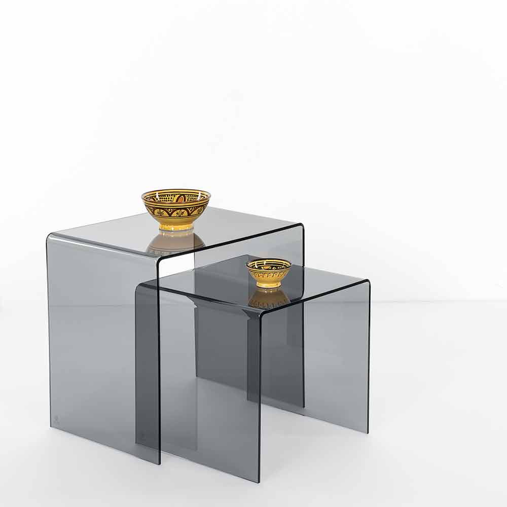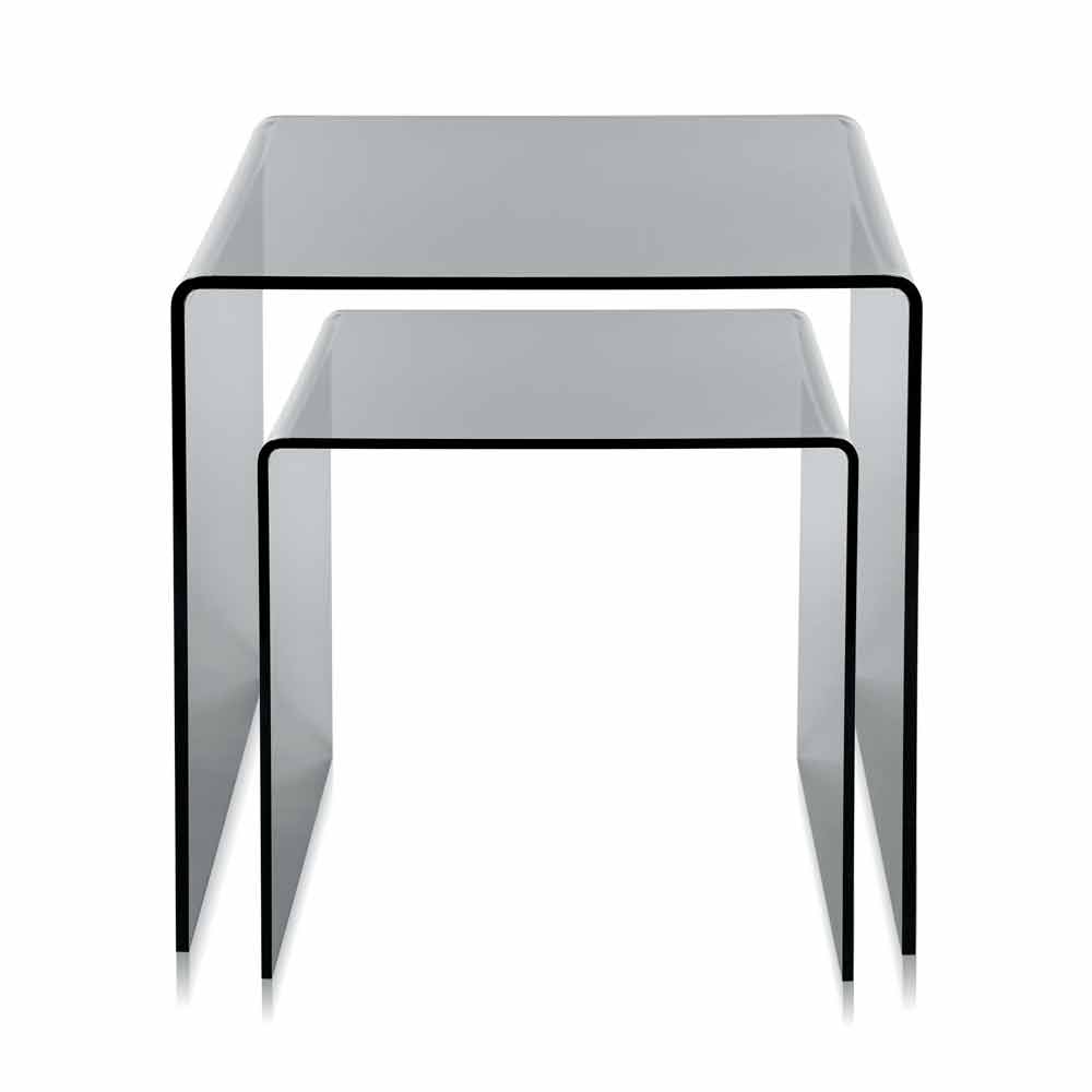 Mesitas de plexiglás coloreadas hechas en Italia, Spinoso. Spinoso es un fantástico conjunto de tablas inspiradas en las geometrías de los años 80 y perfectas para colocar en cualquier entorno.