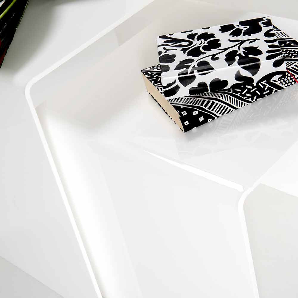 Fabricado en Italia con materiales de alta calidad, como plexiglás PMMA de polímero 100% virgen, corte y doblado con láser a altas temperaturas. Disponible en diferentes colores: - blanco - negro - rojo transparente; - ahumado transparente; - multicolor - Transparente.