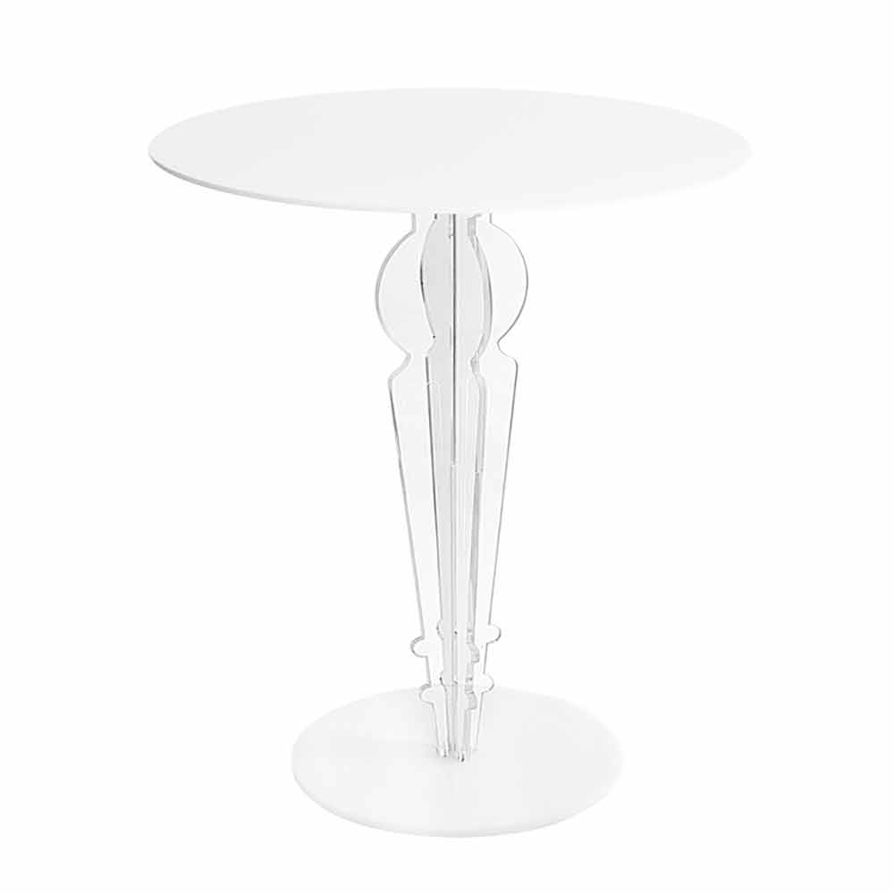 Mesa de diseño clásico, Cles La mesa pequeña CLES está destinada a ser una reinterpretación de las mesas pequeñas de lujo del siglo XVIII, con una pata central única. Está hecho con un cristal acrílico de PMMA extremadamente puro, con pata y superficie transparentes en color blanco. Las incisiones láser magistrales a lo largo de toda la pierna mejoran el brillo y la transparencia que se conservan sin variación a lo largo del tiempo. El plexiglás PMMA utilizado de polímero virgen es no tóxico, hipoalergénico, inodoro y antibacteriano. 100% reciclable. Pensado, diseñado y hecho en Italia con material italiano.