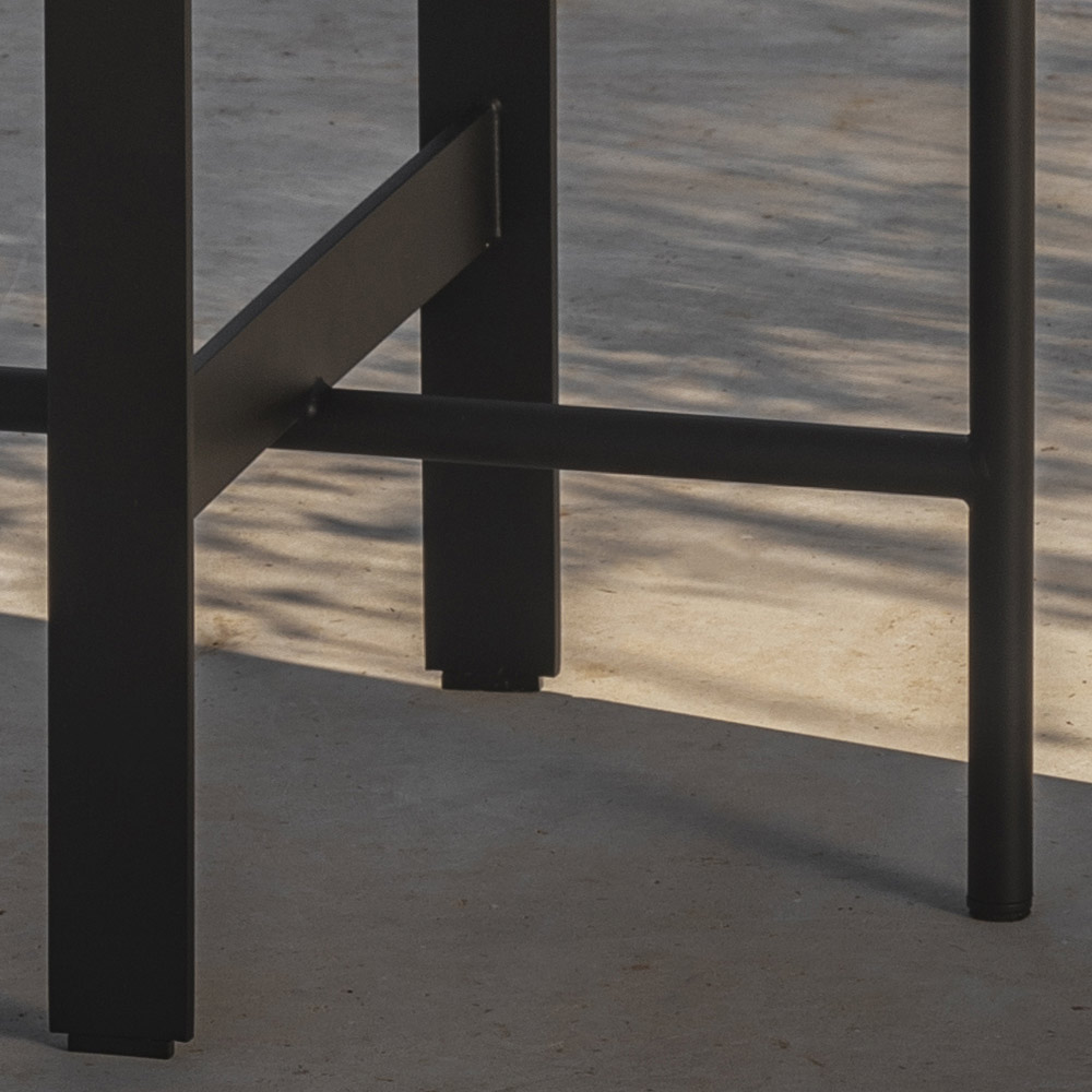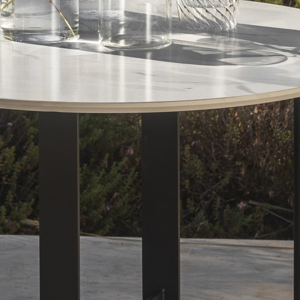 La tapa de gres porcelánico, además de crear un maravilloso efecto elegante , hace que esta mesa de centro sea muy compacta y versátil, perfecta para completar con estilo cualquier situación de decoración exterior sin opacar el aspecto funcional.