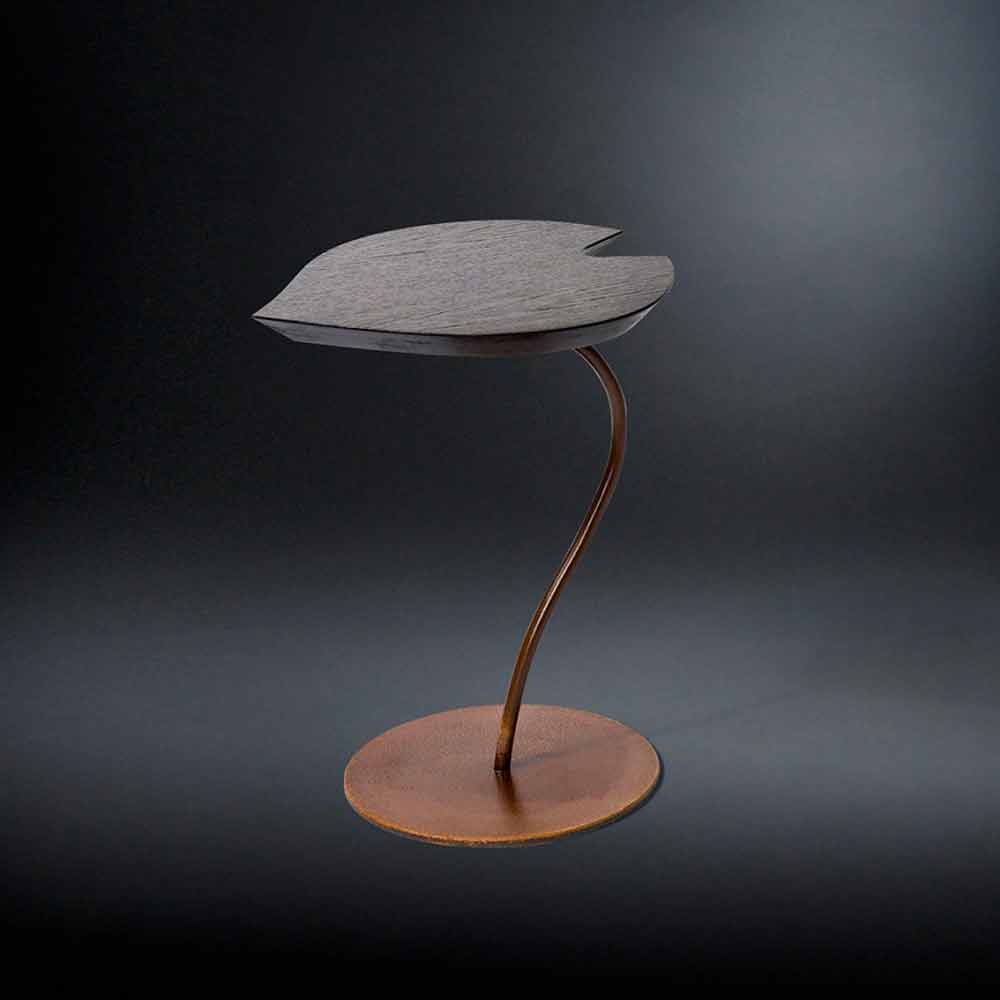 Mesita de madera de diseño con base de hierro modelo Leaf