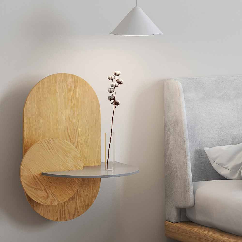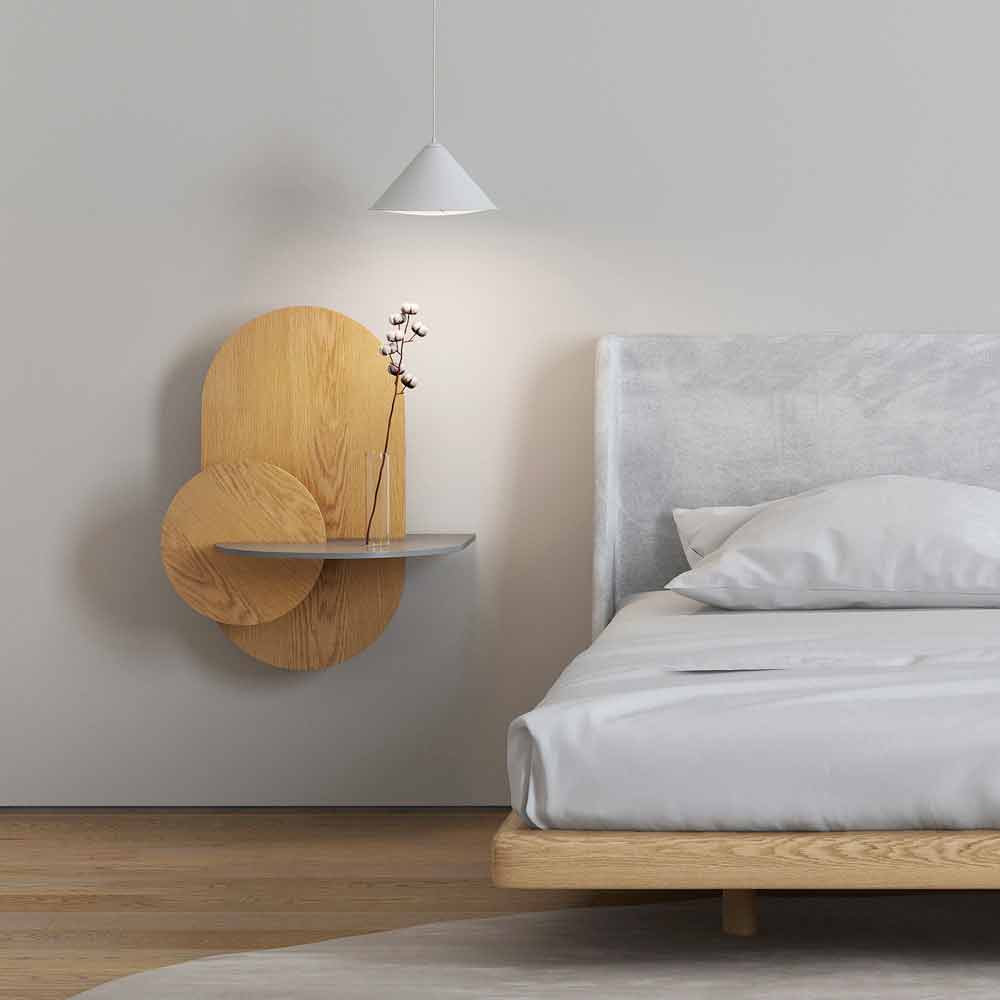 La mesita de noche es uno de los elementos más importantes en cualquier dormitorio y es necesario que la estructura combine funcionalidad y un aspecto decorativo y de diseño. Esta mesita de noche modular está formada por 3 paneles de madera contrachapada, 2 de ellos en acabado roble y uno en acabado fresno teñido de gris . El panel que actúa como superficie de apoyo real se fija a la pared permitiendo así ningún tipo de base que pueda ocupar más espacio, mientras que los dos paneles colocados verticalmente son modulares y permiten hasta 8 configuraciones diferentes obteniendo así un producto personalizable según sus necesidades. . La estructura también tiene un orificio para cables colocado detrás del panel frontal que permite ocultar cables y cargadores de batería, haciendo que la mesita de noche sea aún más funcional y práctica gracias al compartimento de 9 cm oculto entre los dos paneles que se puede usar para guardar y organizar libros y revistas o cualquier otro. objeto que siempre quieres tener a mano. Este objeto de diseño representa una idea innovadora y original capaz de captar todas las miradas dentro de la habitación gracias a su estilo único y la combinación de materiales y acabados que le dan elegancia y un diseño extremadamente moderno . Rápido y fácil de limpiar con un simple paño húmedo.