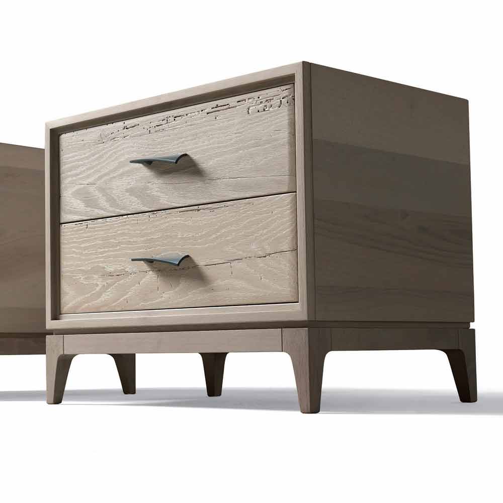 Mesita de noche moderna con 2 cajones de roble antiguo, l.60xp.42 cm, Margo
