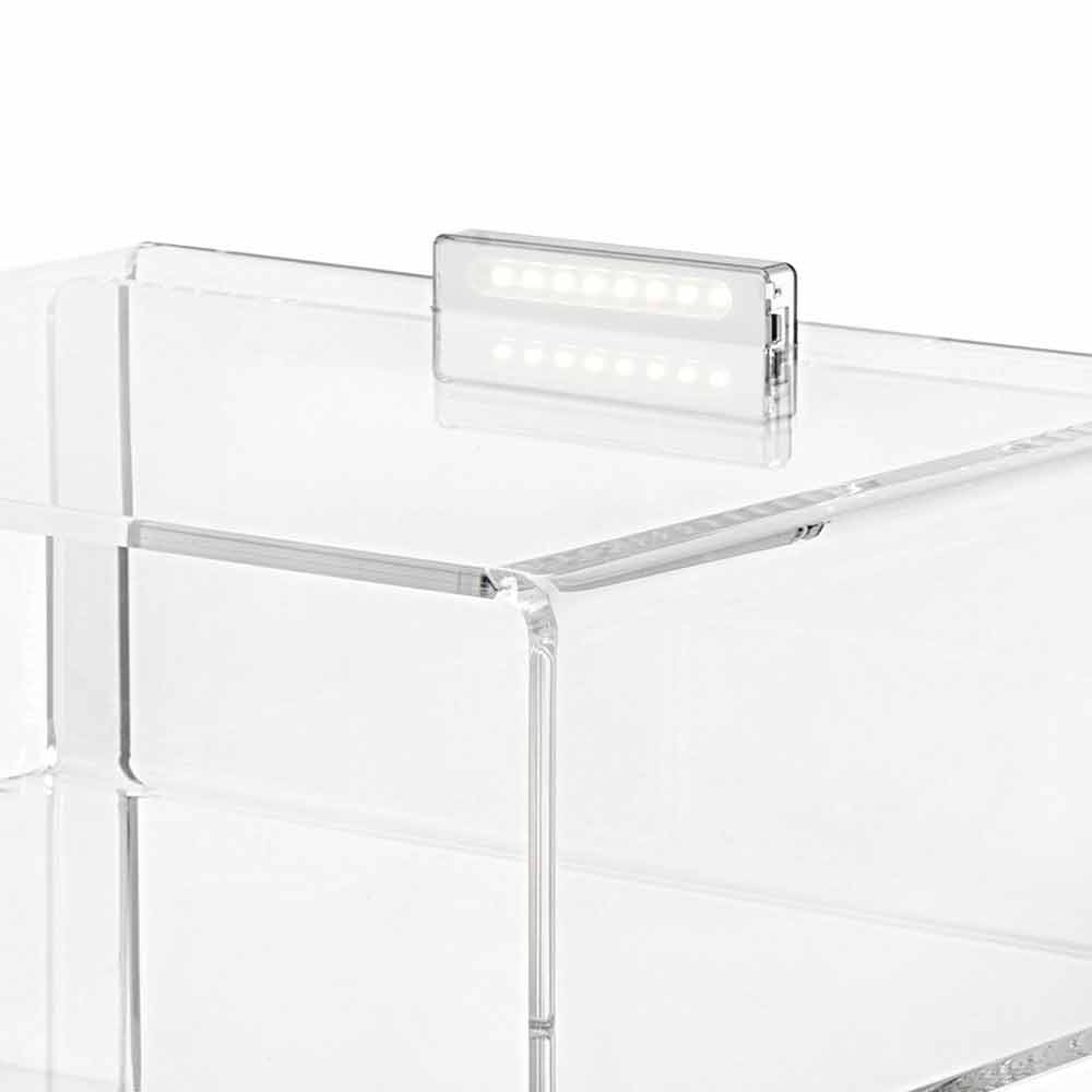 Un "toque" de luz: solo tócalo y la práctica mesita de noche Adelia hecha de plexiglás de PMMA 100% de polímero virgen transparente, ilumina e ilumina la habitación. La luz LED incorporada es extraíble; la batería es de litio y el cable de alimentación de la pared está incluido. La luz se enciende y apaga simplemente tocando el cuerpo luminoso. El brillo y el brillo se mantienen constantes y sin cambios a lo largo del tiempo. El plexiglás de PMMA de polímero virgen utilizado es no tóxico, hipoalergénico, inodoro y antibacteriano. 100% reciclable Diseñado, diseñado y fabricado en Italia, con materiales italianos.