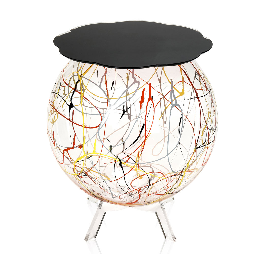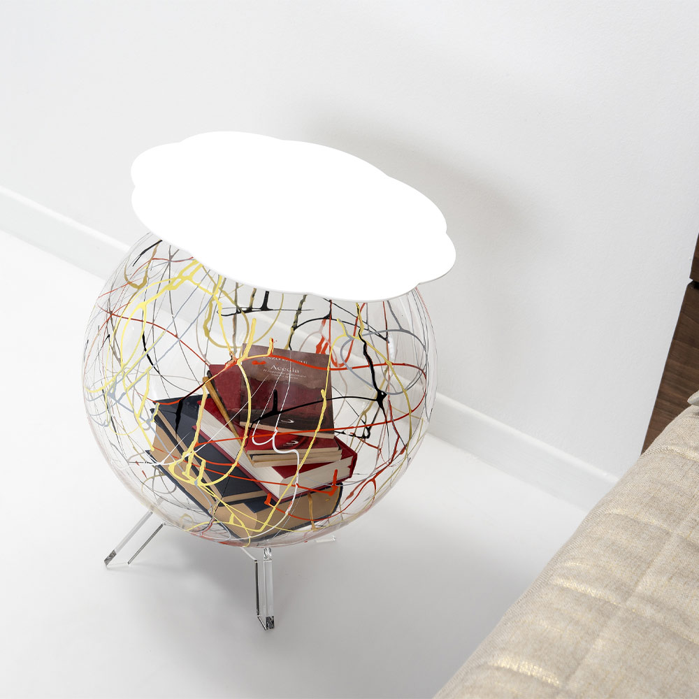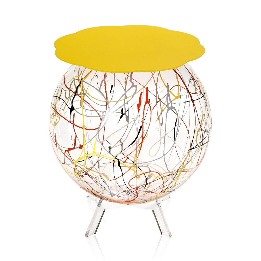Mesita de noche en plexiglás transparente con pintura de color fabricada en Italia.